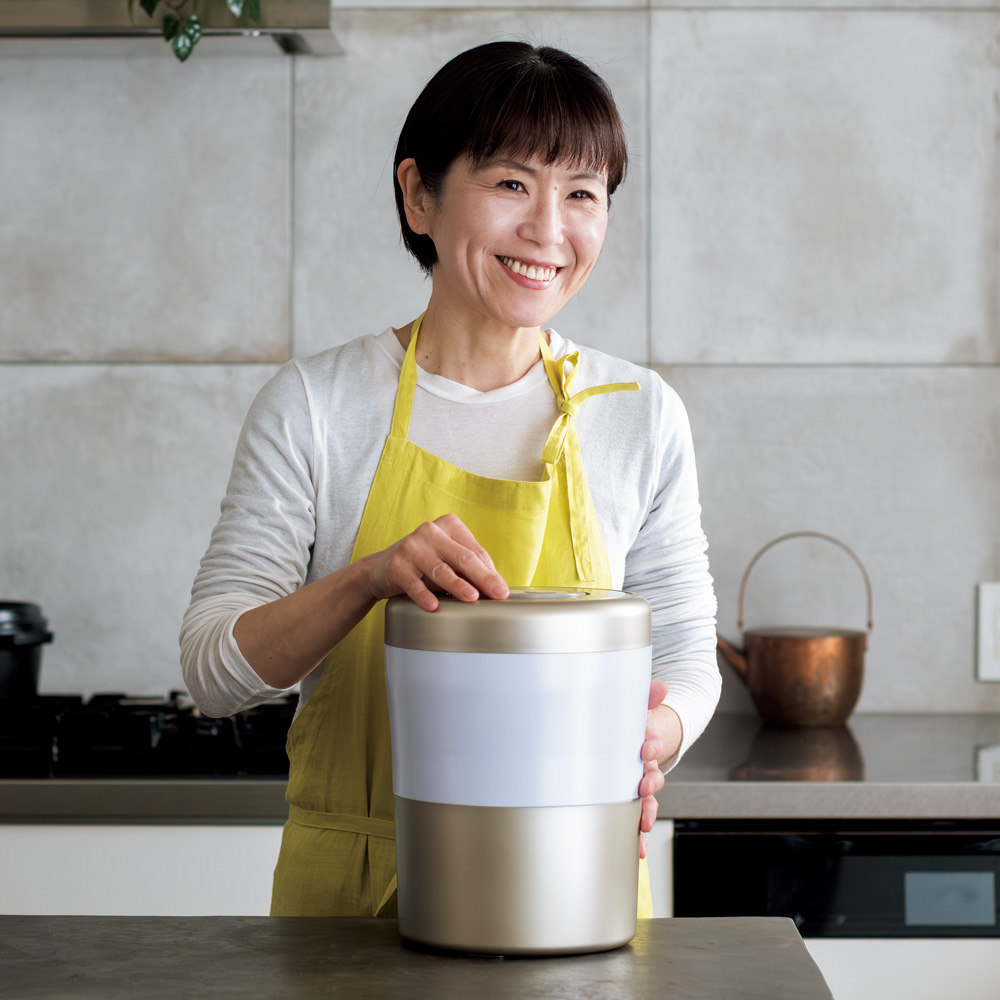 料理家・ワタナベマキさんも愛用中。「シンプルでコンパクトなデザインも好きですし、日本のごみ処理専門メーカー製という信頼感も選んだ決め手です。」
