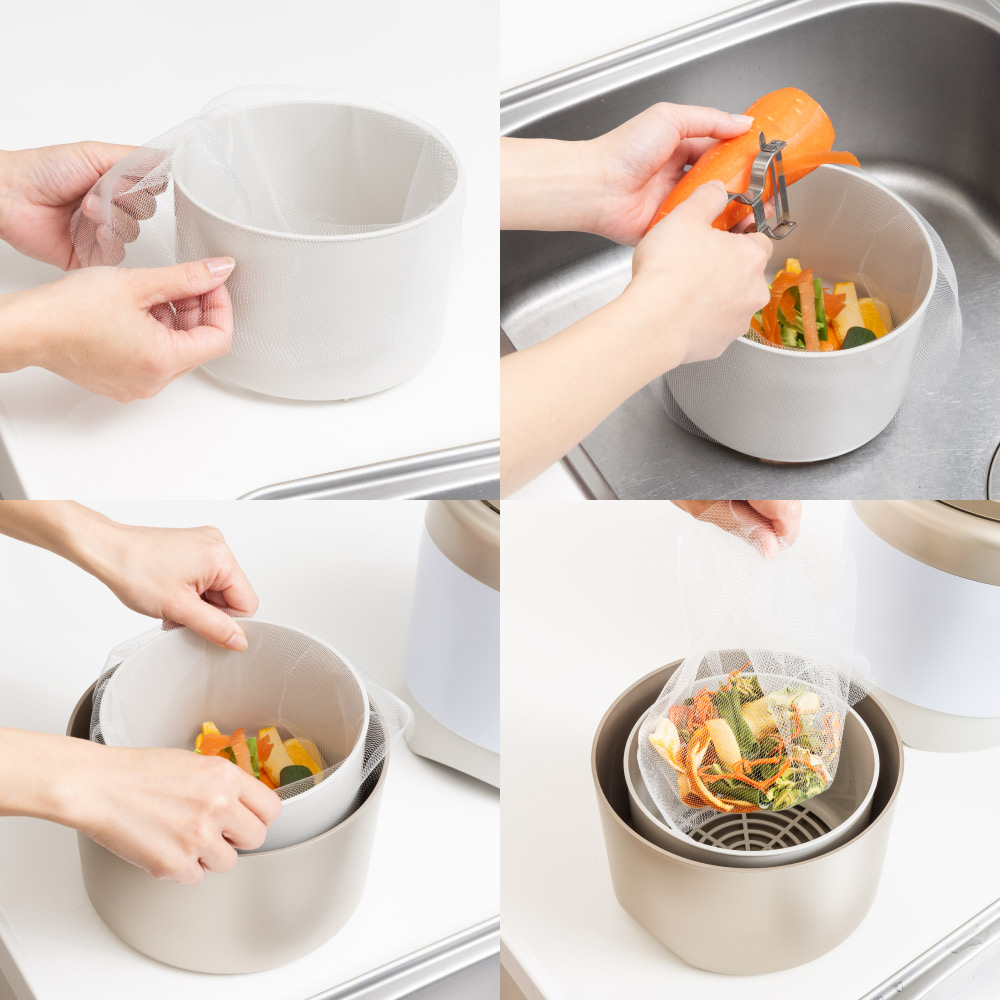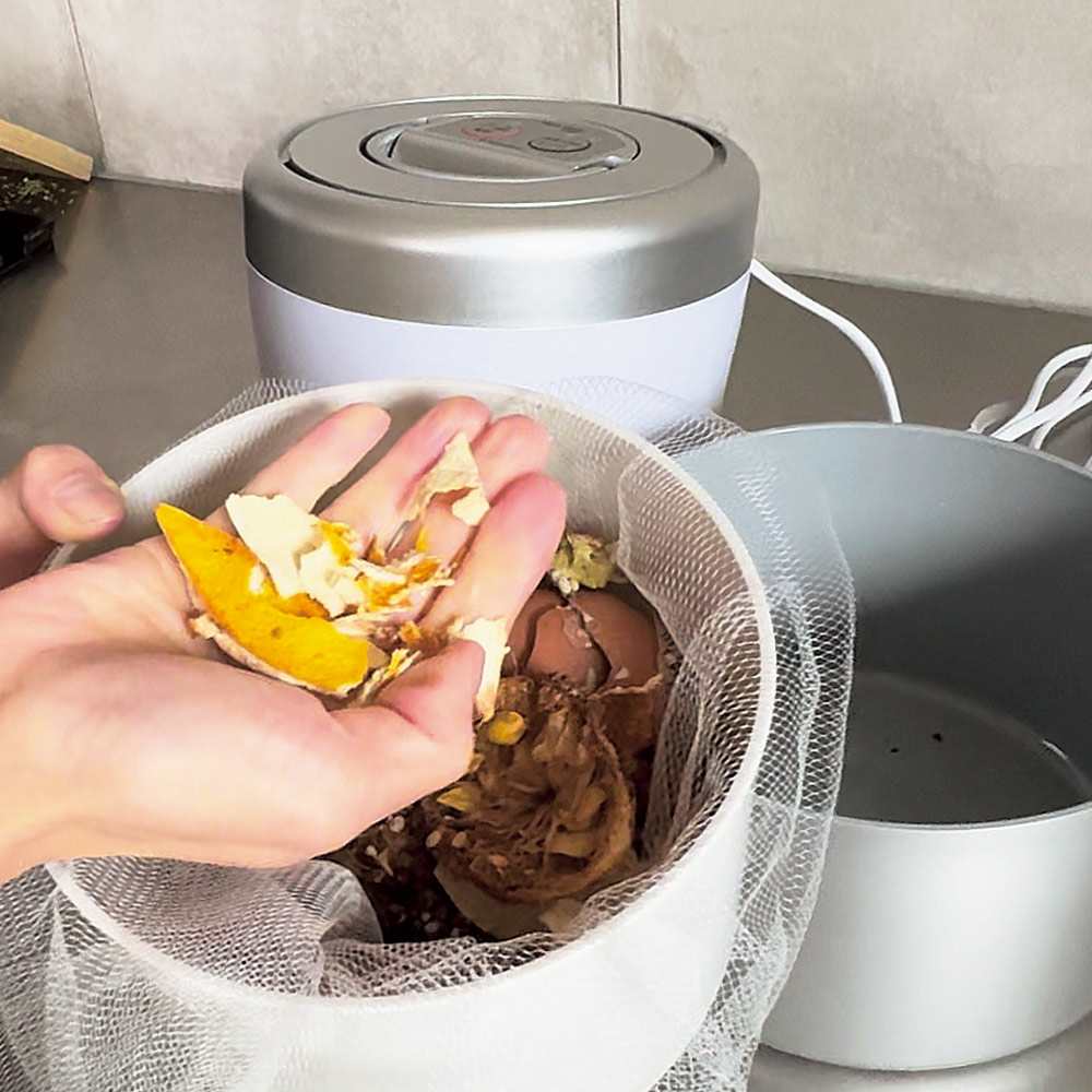 生ごみをカラリと「乾燥」させて、土にも還せる。音が静かで夜間も使えます。