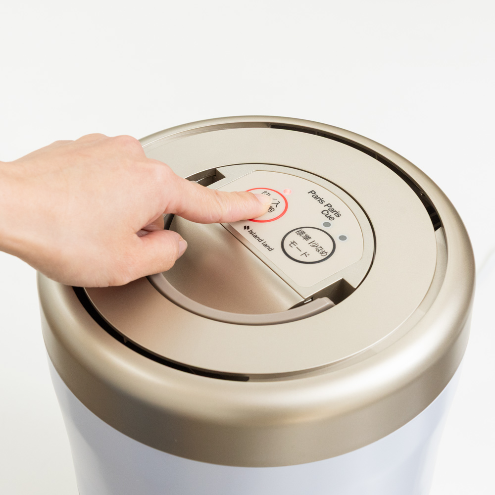 場所を取らずスマートなデザインなので、キッチンに出しておいて毎日使えます。温風で乾燥させるしくみだから処理中の音がとても静かで、夕食の後片付け後にスイッチを入れれば深夜電力を賢く使えます。眠っているあいだにじっくり乾燥させられた生ごみは、翌朝にはパリッと乾いてニオイもすっきり。気持ちよく一日をスタートできますね。商品画像の説明。