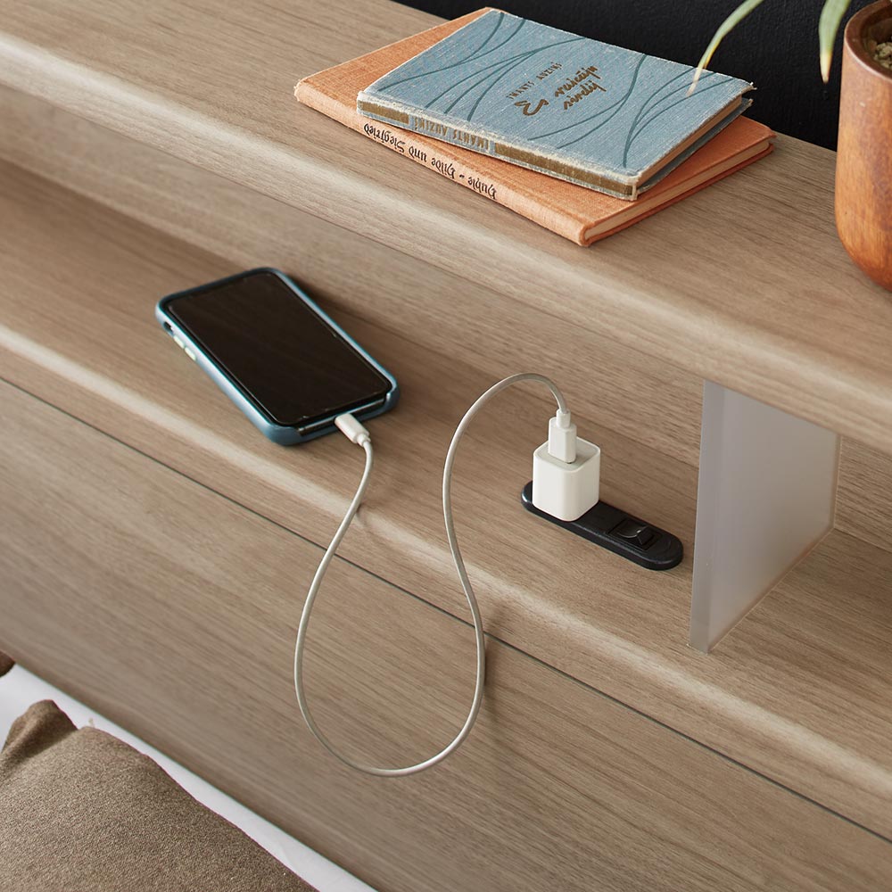 ヘッドボードには充電に便利なコンセント付き。