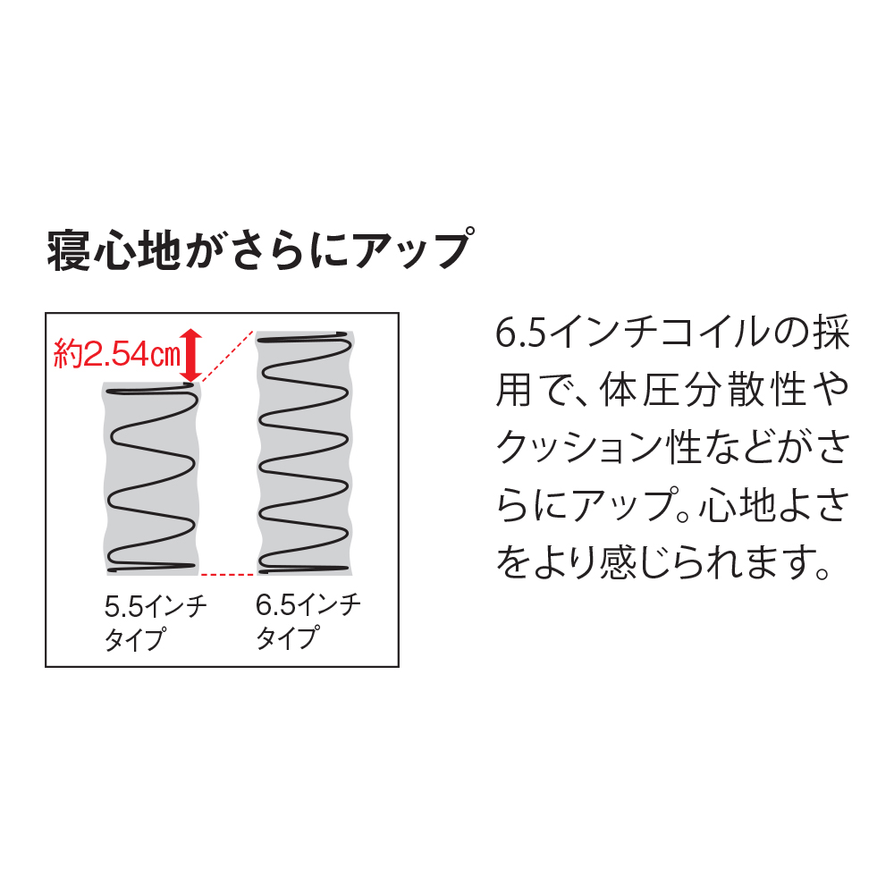 高さ28cmのコイルスプリングを約17cmに圧縮した、コイル線径1.9mmのポケットコイルを使用。厚さ25.5cmの程よい安定感とクッション性で、よりしっかりと身体を支えます。商品画像の説明