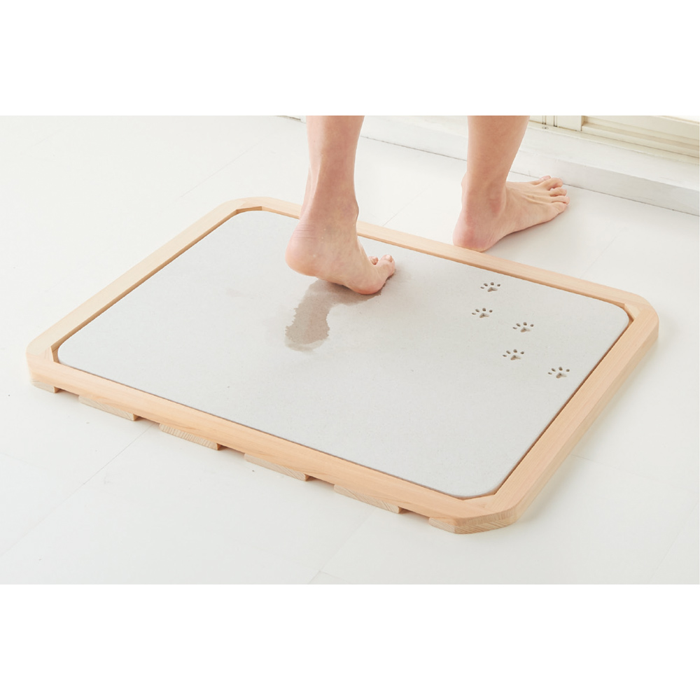 家族全員が気持ちよく使え、清潔な状態をキープできる大好評のMoiss素材バスマット。表面に無数の小さな孔が空いているため、付着した水をすぐに吸収してサラサラに。洗濯不要で、カビ菌やダニの繁殖も抑えます。こちらはヒノキ製の専用スノコ付きになります。