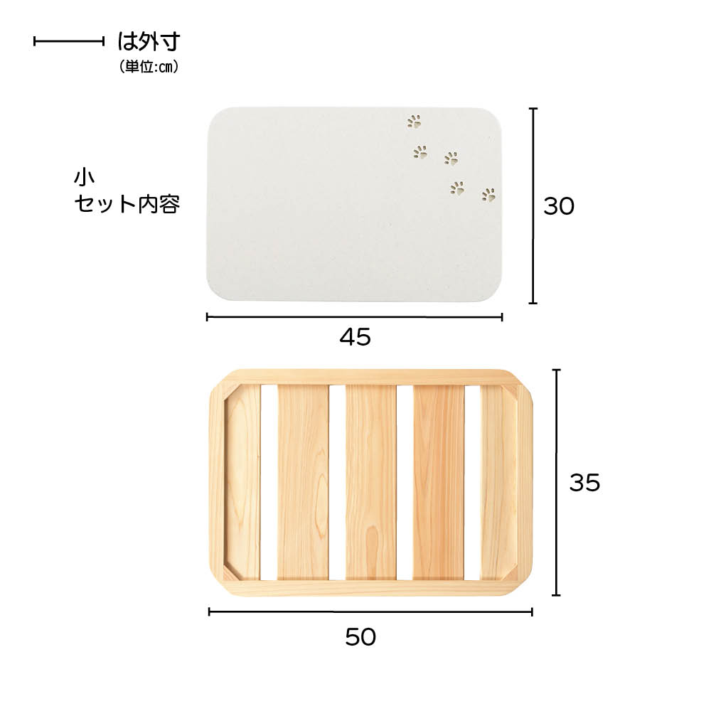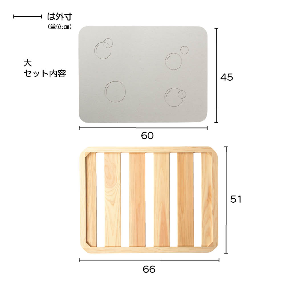 ■素材:バスマット…バーミキュライト、珪藻土、珪砂、パルプ、消石灰、専用ひのきスノコ…国産ヒノキ天然木