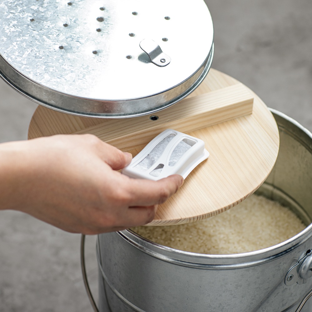 フタには防虫剤や乾燥材を入れられますフタは二重構造で、間に防虫剤や乾燥剤を入れることができるようになっており、直接お米につかないので衛生的にお使いいただけます。