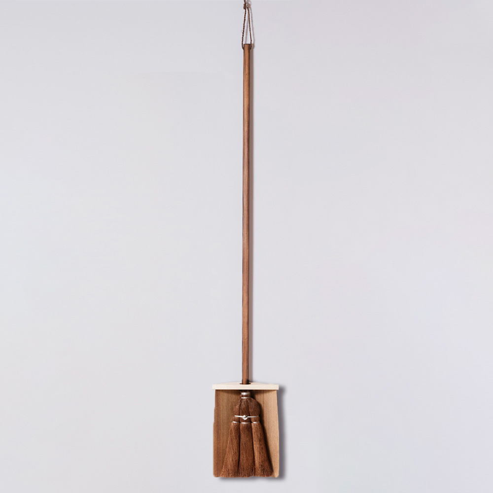 ● ほうきの引き立て役:天然木ならではの美しい佇まいは、別売りのほうきと一緒に吊るすだけで、洗練された空間を演出します。● ほうきの目隠し:裏返せば、ほうきの目隠しに。来客時など、生活感を隠したい時にスマートに収納できます。