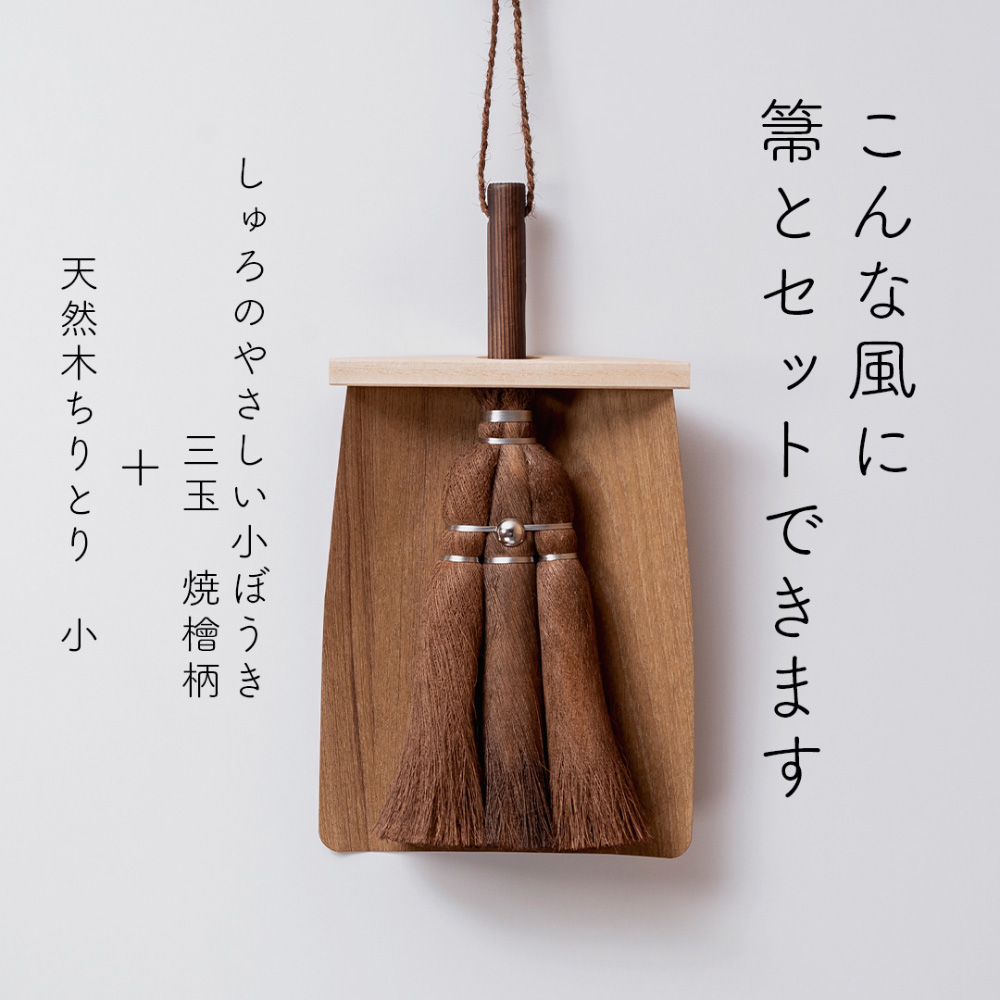 天然木のちりとりは、別売りのほうきのサイズに合わせて大小ご用意。 ※左から大サイズ、小サイズ