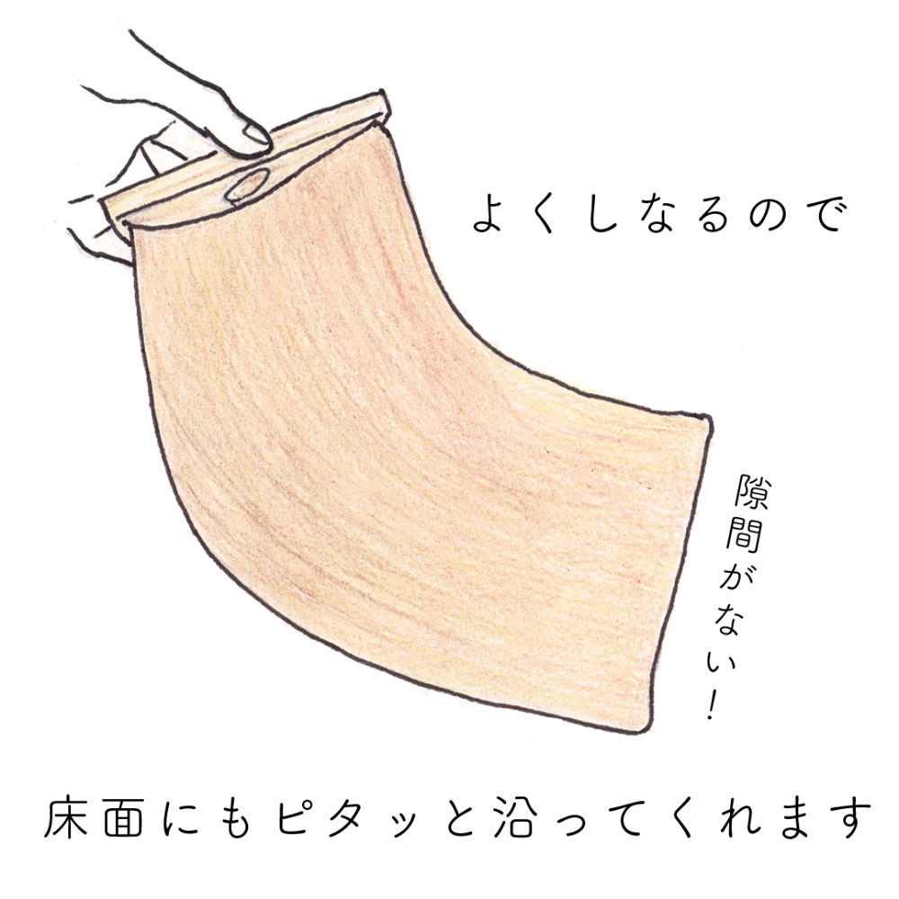 紙のように薄く削り出し、しなやかに曲がる特性は、デリケートな床面にも優しくフィットします。