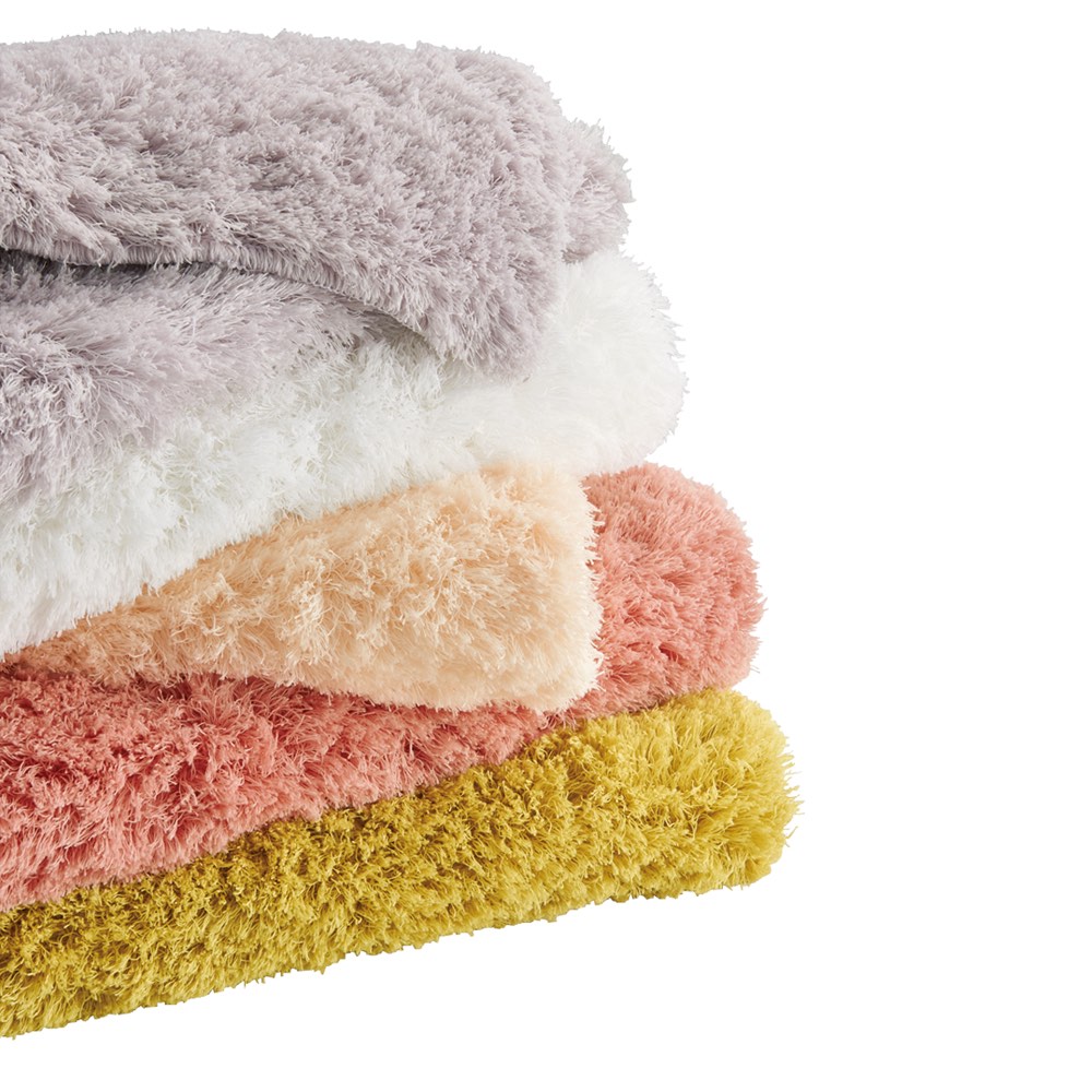 水まわりをカラッと気持ちよくキープしてくれる吸水速乾糸で作ったマット。遊び毛が少ないのも特長です。