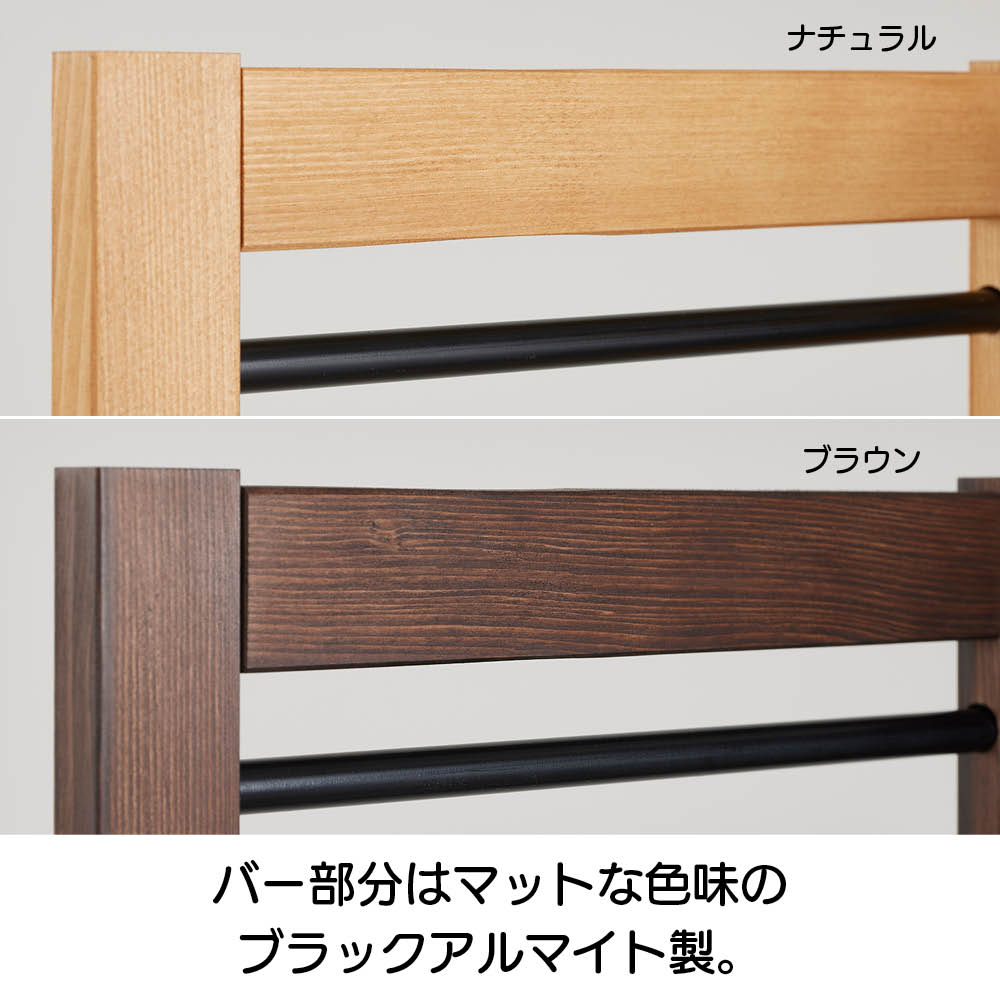 バーからクロスを取り外せば物干しに。天然木の風合いが、北欧ナチュラルな空間にマッチ。インテリアの雰囲気を壊すことなく、おしゃれに部屋干しが可能です。