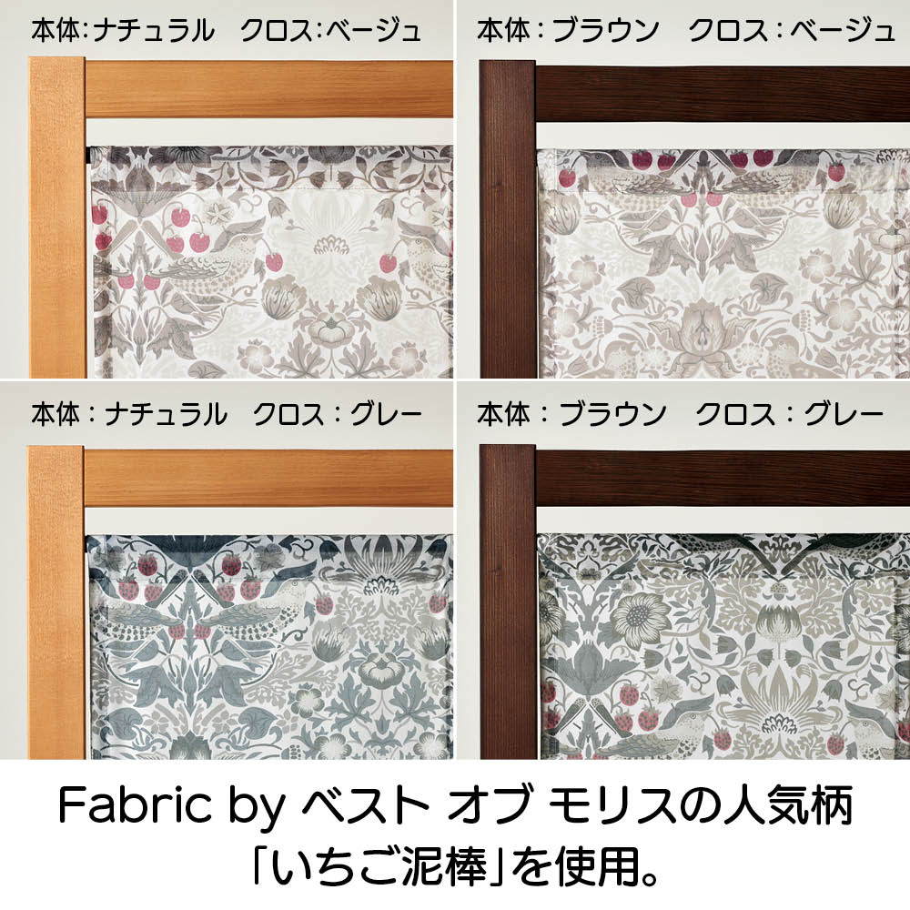 パーテーションクロスには、「モダンデザイン」の父と称されるイギリスのテキスタイル・デザイナー、ウィリアム・モリスの「いちご泥棒」を使用。いちごをついばむツグミを描いたデザインはモリスの代名詞ともいわれ、今も世界中で愛されています。「Fabric by BEST OF MORRIS」は、モリスのテキスタイル生地を使った製品を通して、日々の暮らしをより豊かにするプロダクトブランドです。