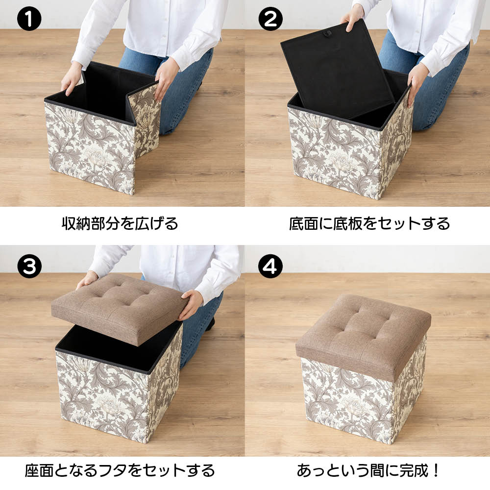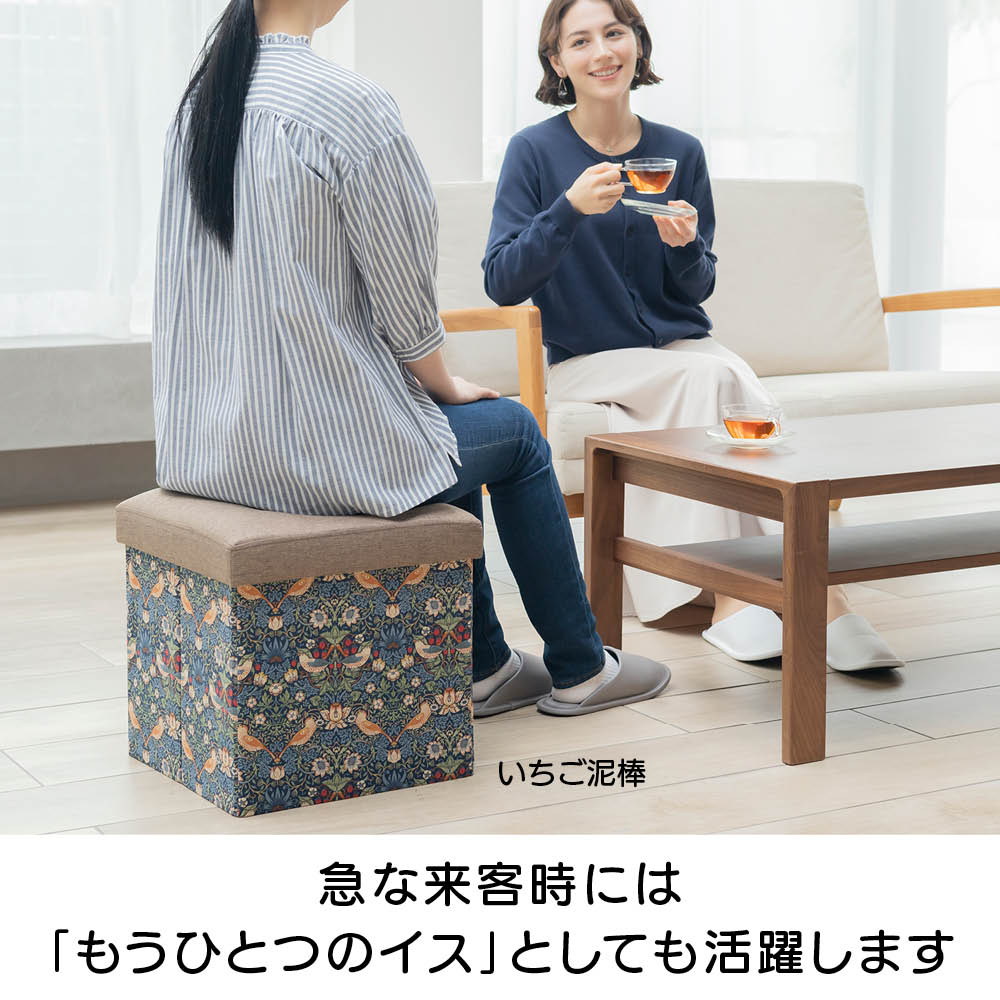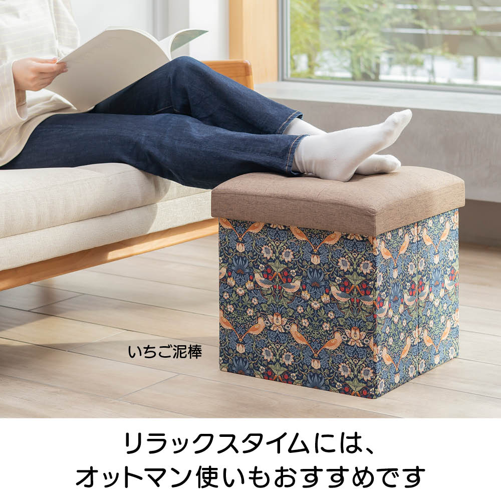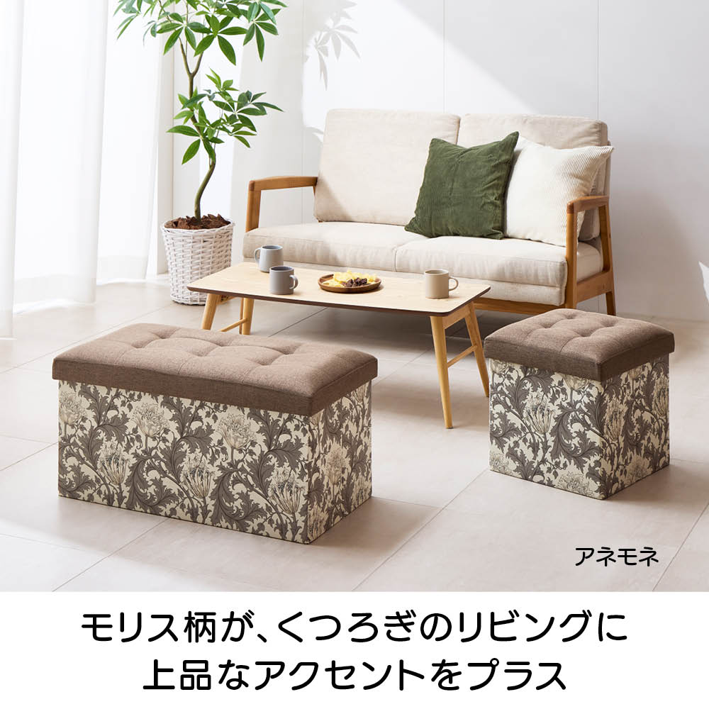 収納もくつろぎもこのひとつで。上品なモリス柄が、暮らしのワンシーンを彩ります。