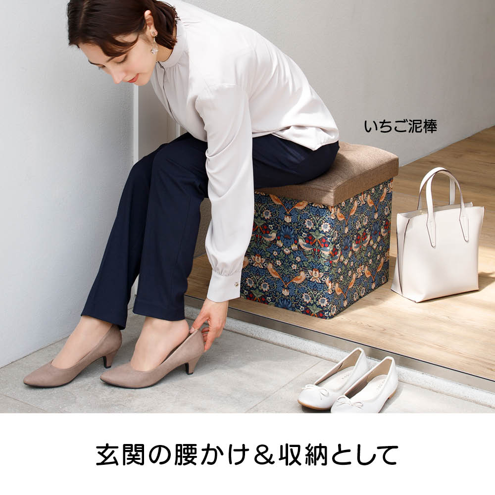玄関の生活感を隠しながら、靴の脱ぎ履きや荷物置きにも便利。英国伝統のモリス柄で、玄関を上品に彩ります。