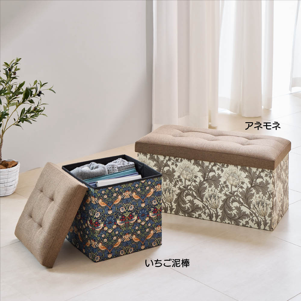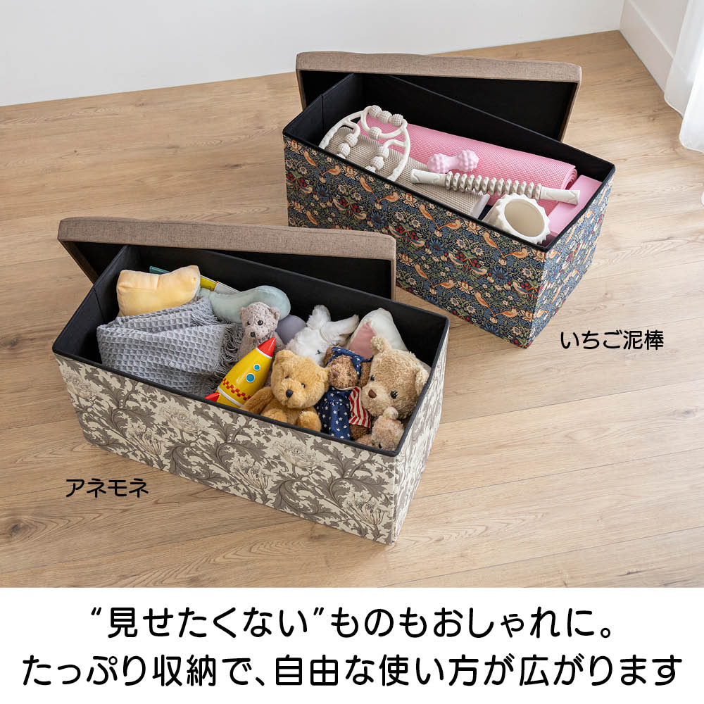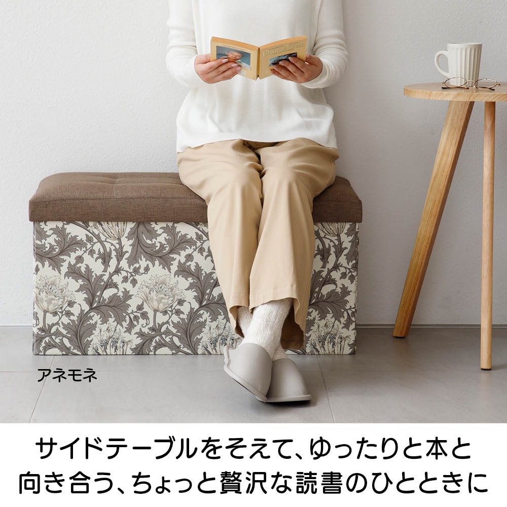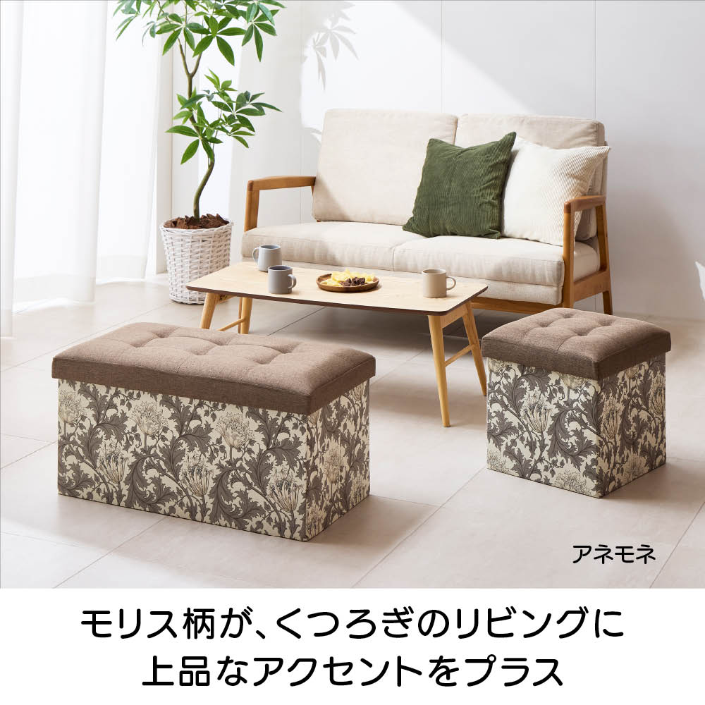 収納もくつろぎもこのひとつで。上品なモリス柄が、暮らしのワンシーンを彩ります。
