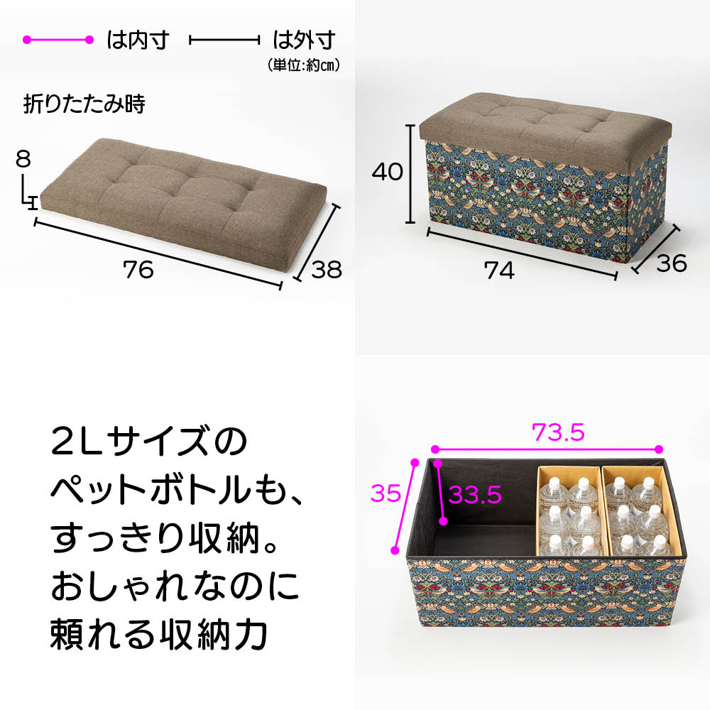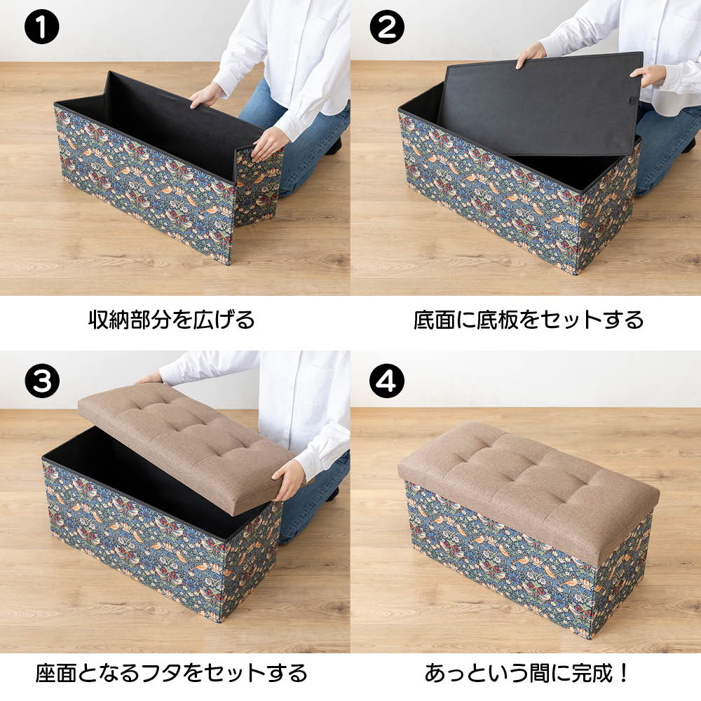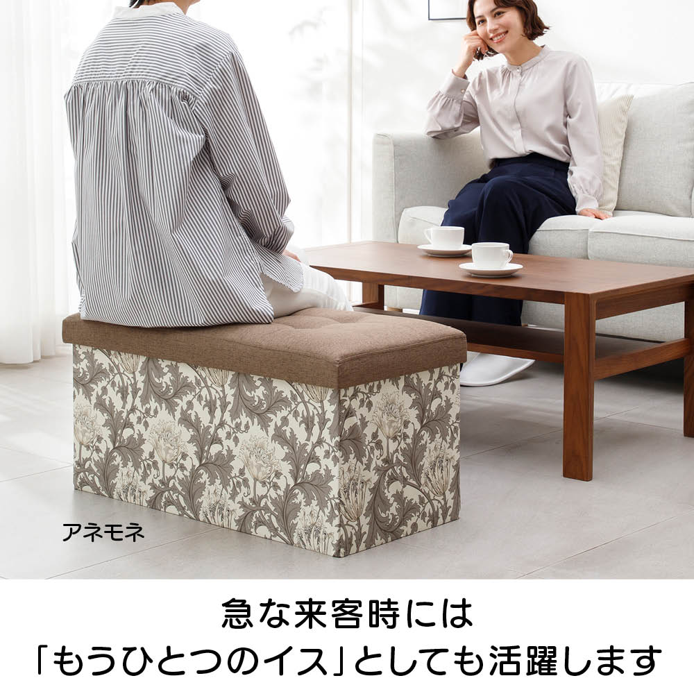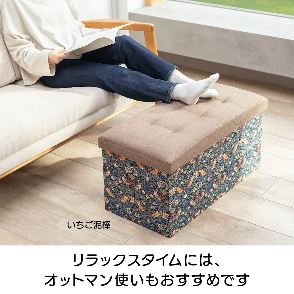収納もくつろぎもこのひとつで。上品なモリス柄が、暮らしのワンシーンを彩ります。