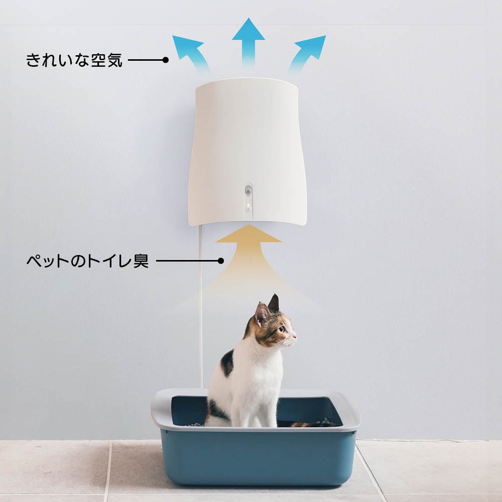 ご存じですか?アンモニアのニオイは「上」にあがるということ。光触媒とUV光技術を駆使した安全な脱臭技術により、ペットのトイレ周りのニオイを上からすばやくキャッチ、部屋中に広がるのを防ぎます。