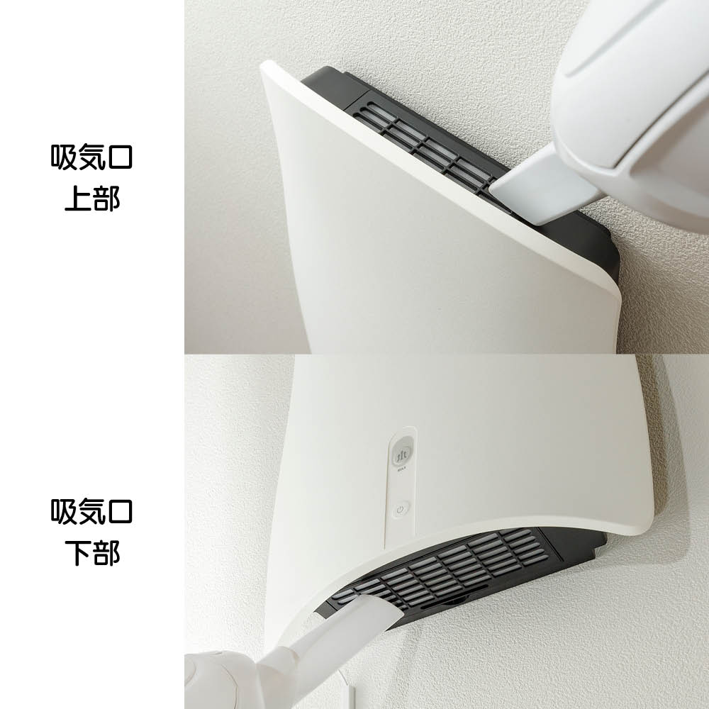 石膏ボードに簡単に取り付けられ、リビングに置いてもスッキリ目立たない省スペース設計も魅力。また、ニオイを上からキャッチすることで、脱臭効果を最大限に引き出します。