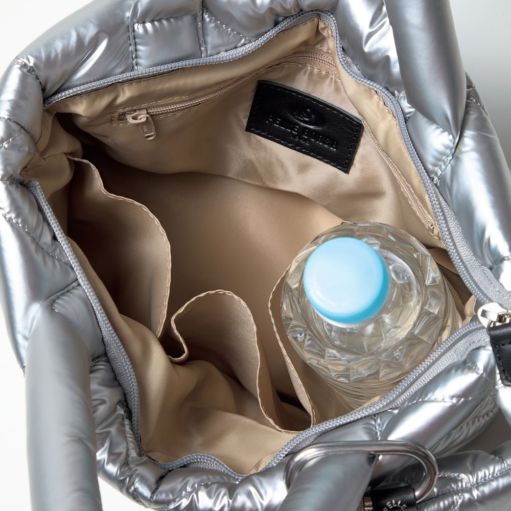 ・メタリックフワフワキルティング加工が魅力・中綿入りハンドルで手にやさしく、型崩れしにくい素材を採用