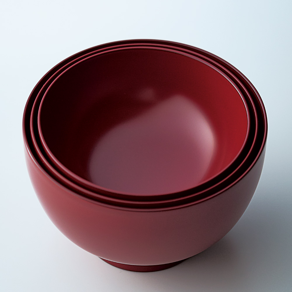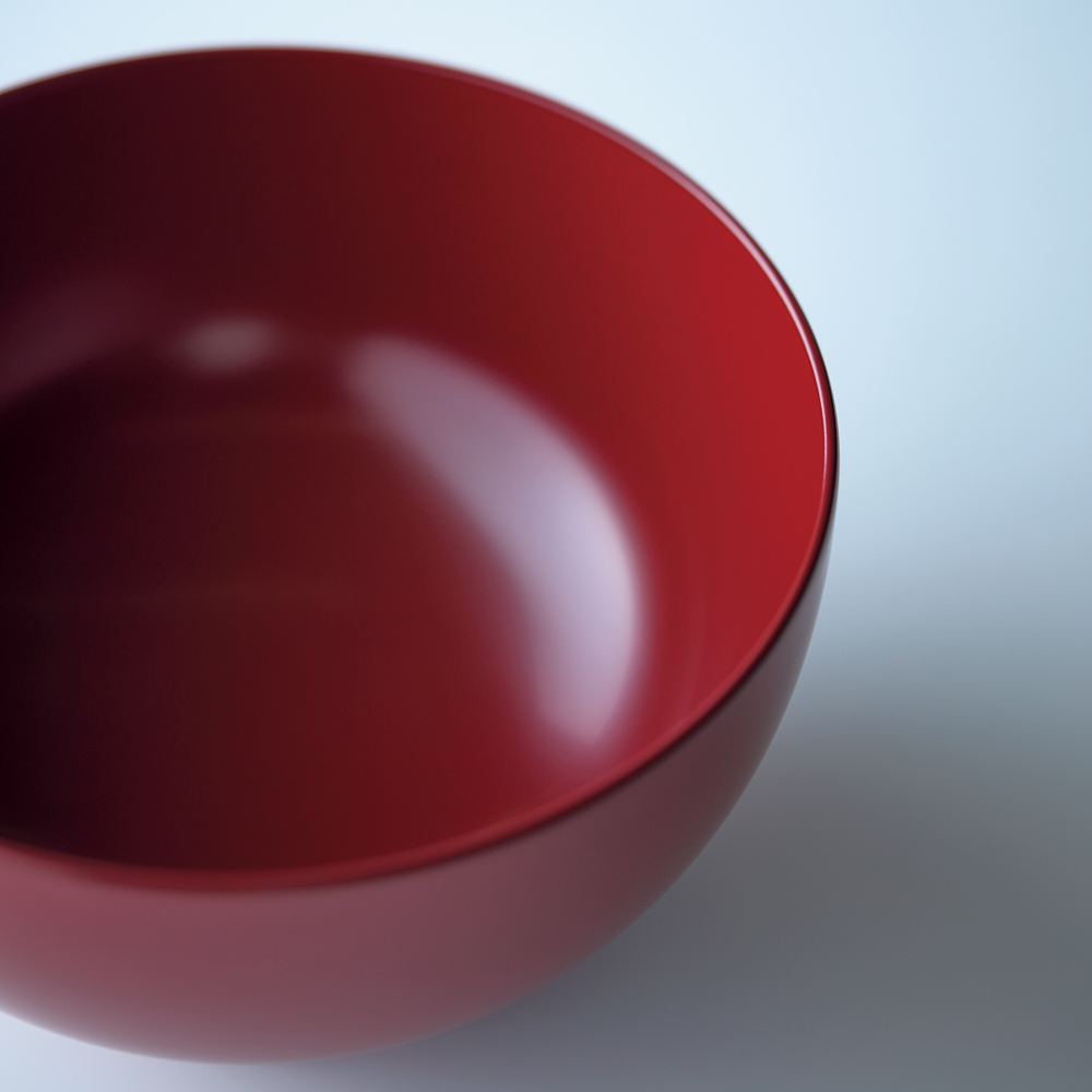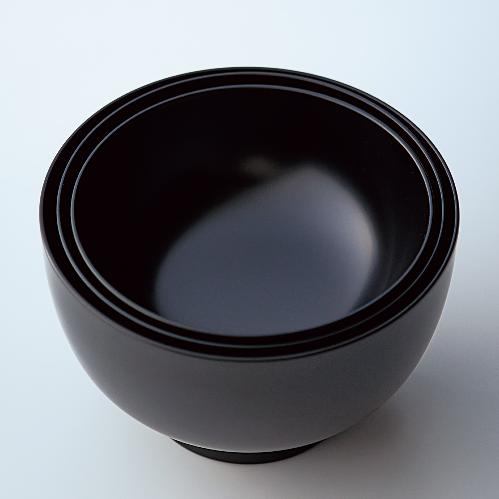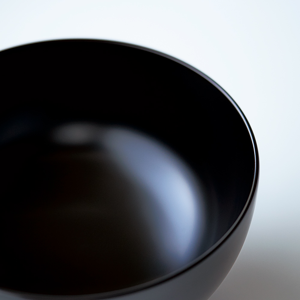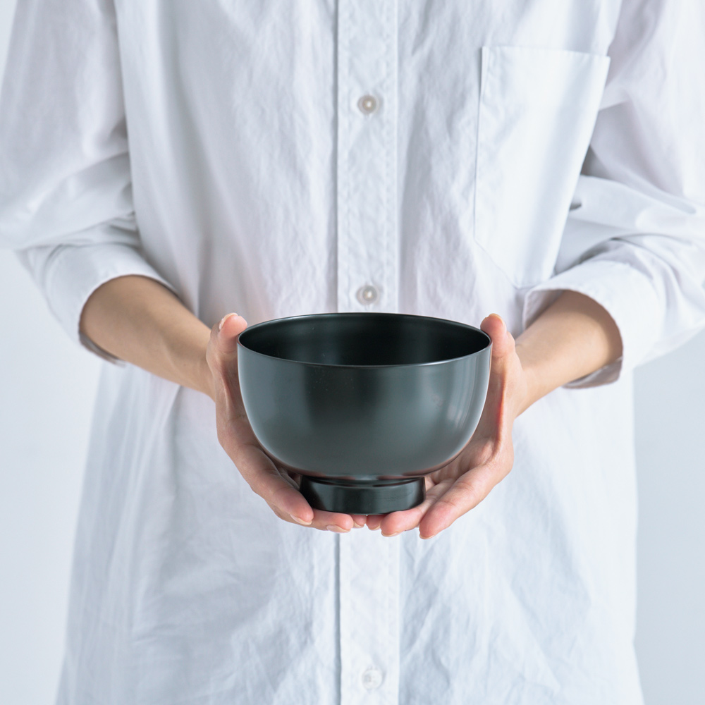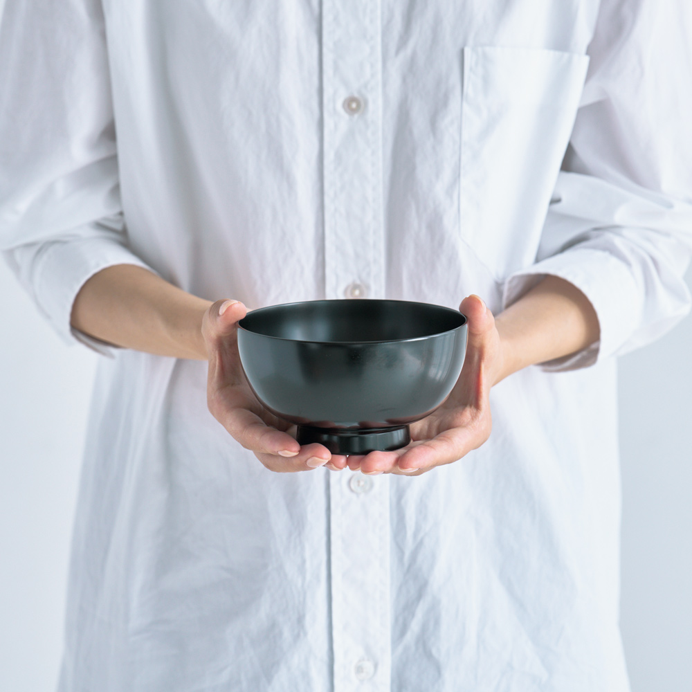 木製の味噌汁椀と同じように、こちらの漆器も熱くなりにくいのが特徴。熱い汁物でも手に持っても心地よい温度感を保ちます。
