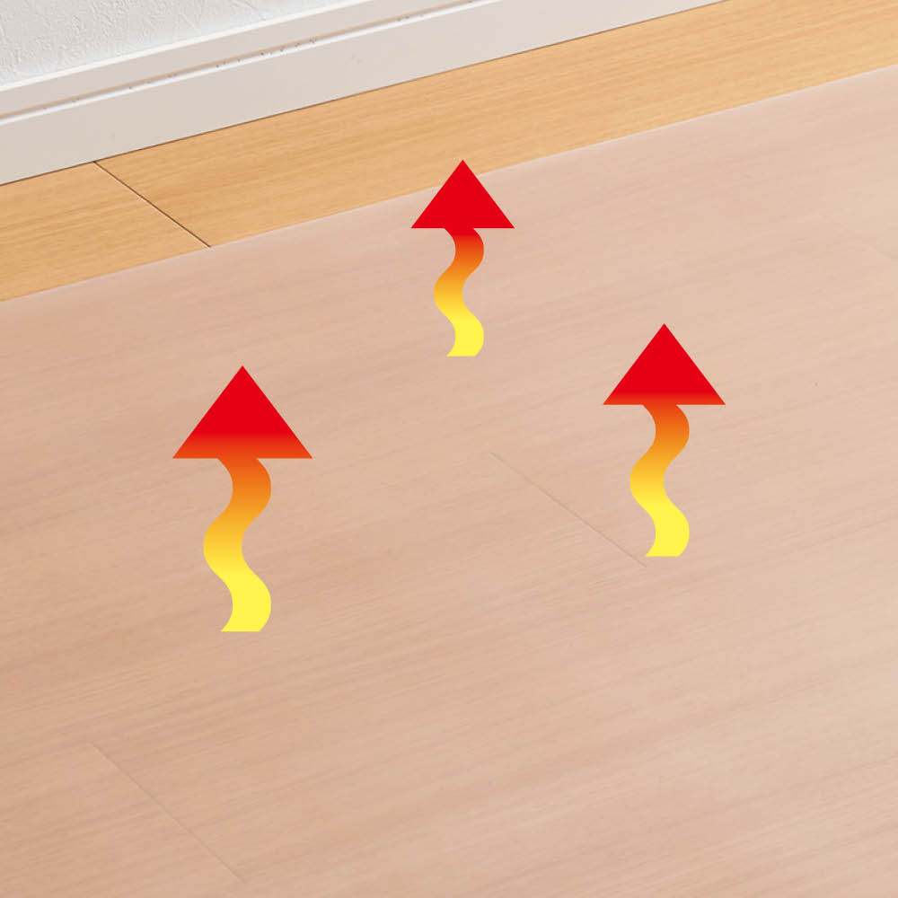 床暖房の熱にも強い特殊素材を採用。変形や劣化の心配がなく、一年中快適にご使用いただけます。冬は暖かく、夏はさらっと。季節を問わず床を守りながら快適な環境を維持します。