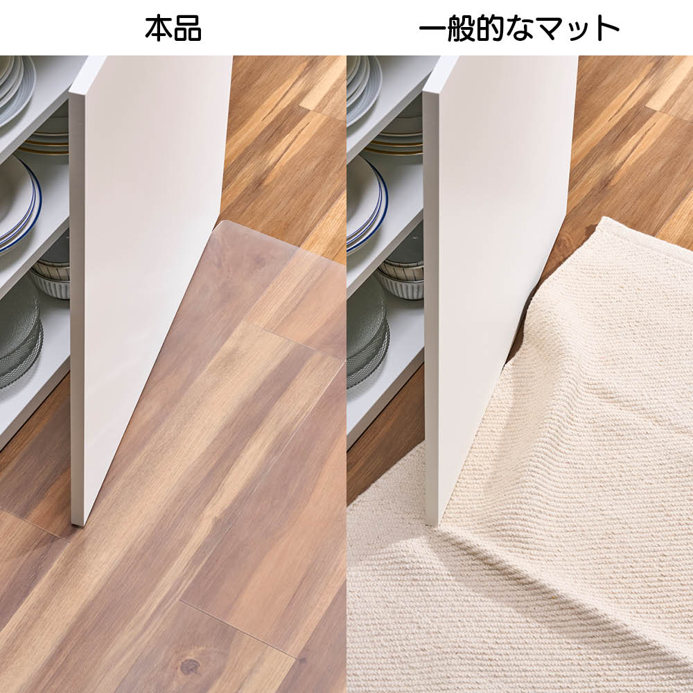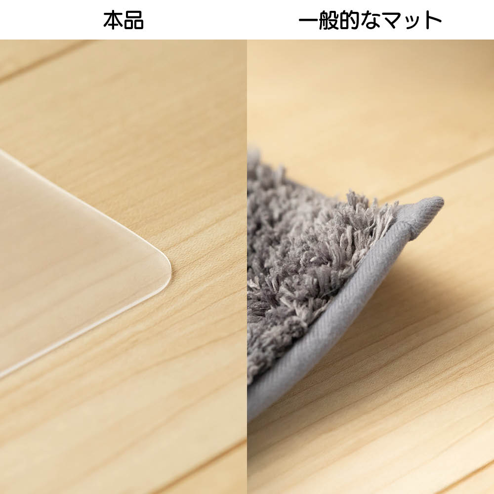 段差を感じない薄さ。床材を汚れから守る透明マット