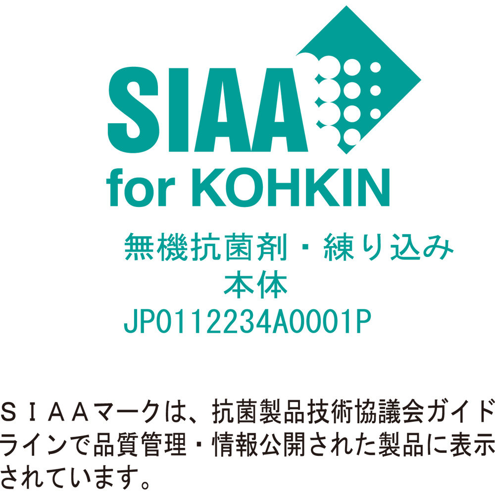 無機抗菌剤・練りこみ本体のあるSIAAマーク付き。抗菌製品技術協議会ガイドラインで品質管理・情報公開製品に表示されているマークです。