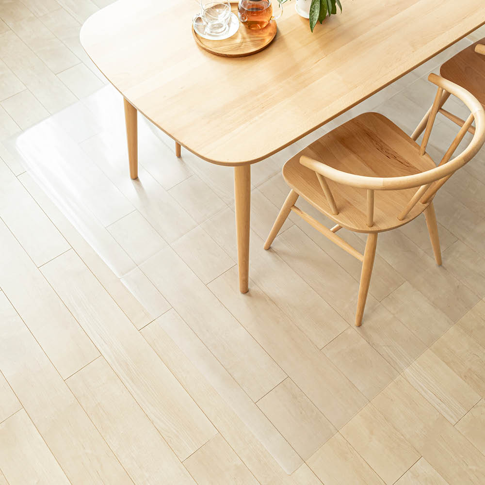 お子様食べこぼし・椅子のキズなどでひときわ汚れやすいテーブル下に悩みはありませんか?そんな時に透明マットを敷くだけで・・・
