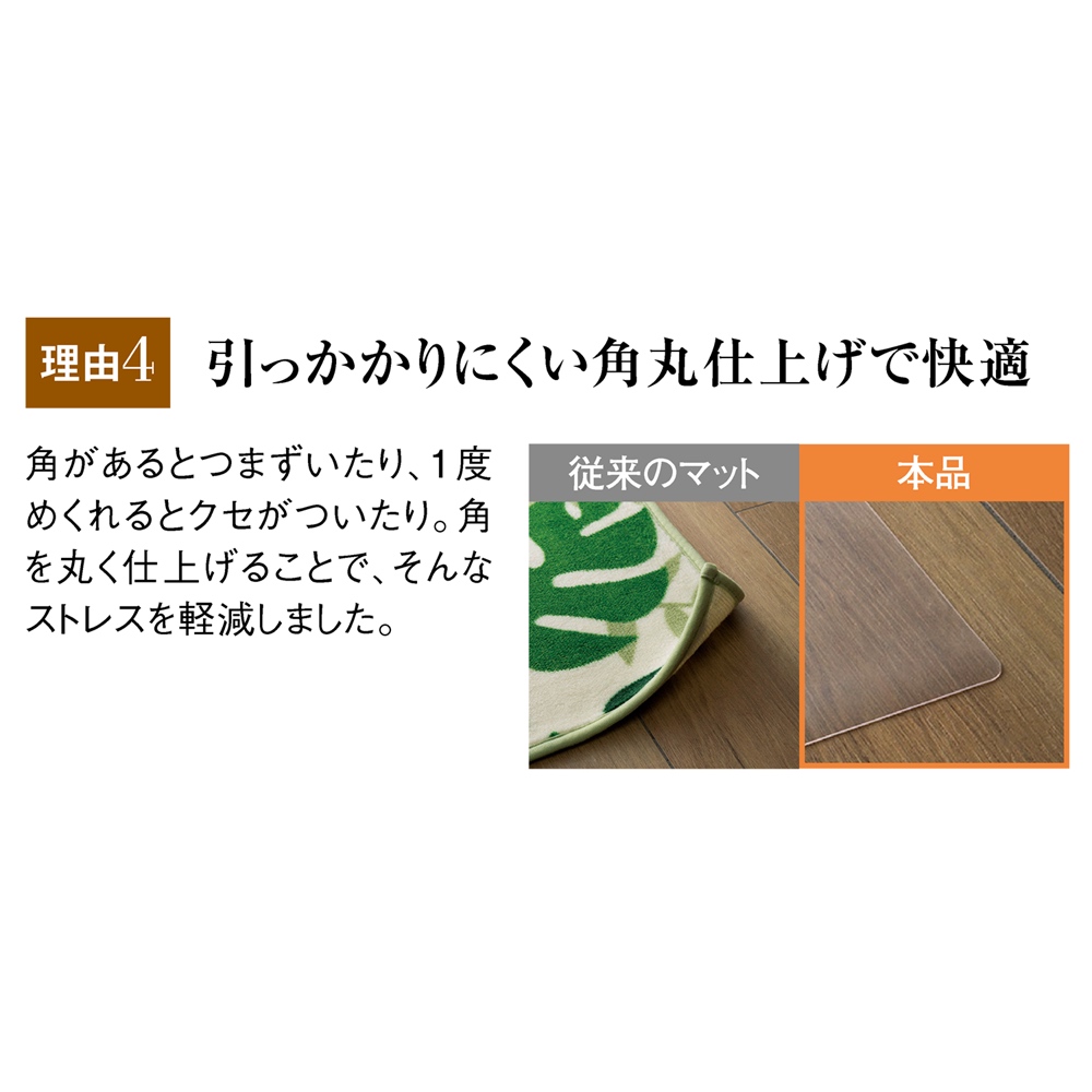 マットだからズレたりするのはこまる。けれど、ピッタリ密着して貼りつくのも困る・・・。そんなお声にも注目しました。