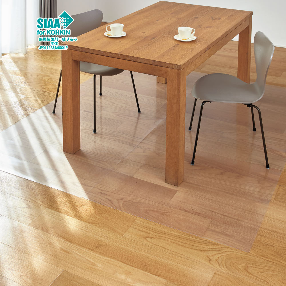 大好評のアキレス透明マットが優れた抗菌性能を誇る「SIAAマーク」を取得してリニューアル!清潔を保ちたいシーンで使うものだからこそ、SIAA(抗菌製品技術協議会)の厳しい基準をクリアした抗菌仕様。表面に付着した菌の増殖を抑制し、長期に渡って気持ちよく使えます。透明テーブル下マットのメリット~そもそもどうして透明マットが必要?~