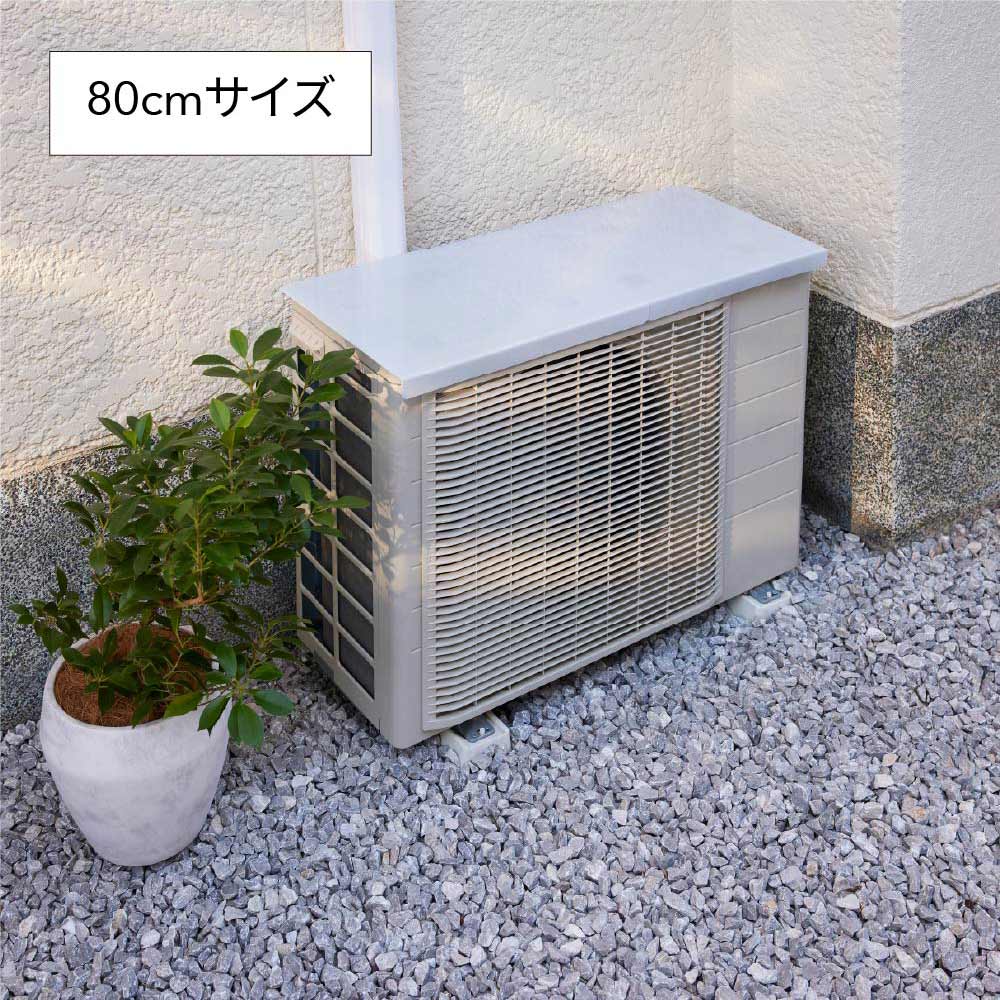 素材は耐久性のあるポリカーボネート製。室外機にもなじみやすいホワイト色&スタイリッシュな見た目なので、人目に付くところに置いても悪目立ちしません。