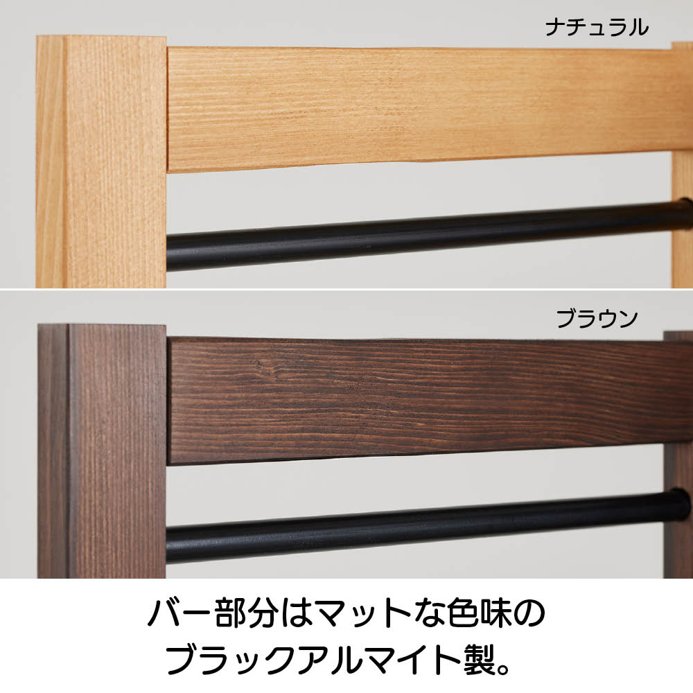 天然木の風合いが北欧ナチュラルな空間にマッチ! こだわりのインテリアの雰囲気を壊すことなく、おしゃれに部屋干しが可能です。ナチュラル色はカフェ風インテリアやブルックリンスタイル、和室までどんなインテリアにも合わせやすいのでおすすめ。