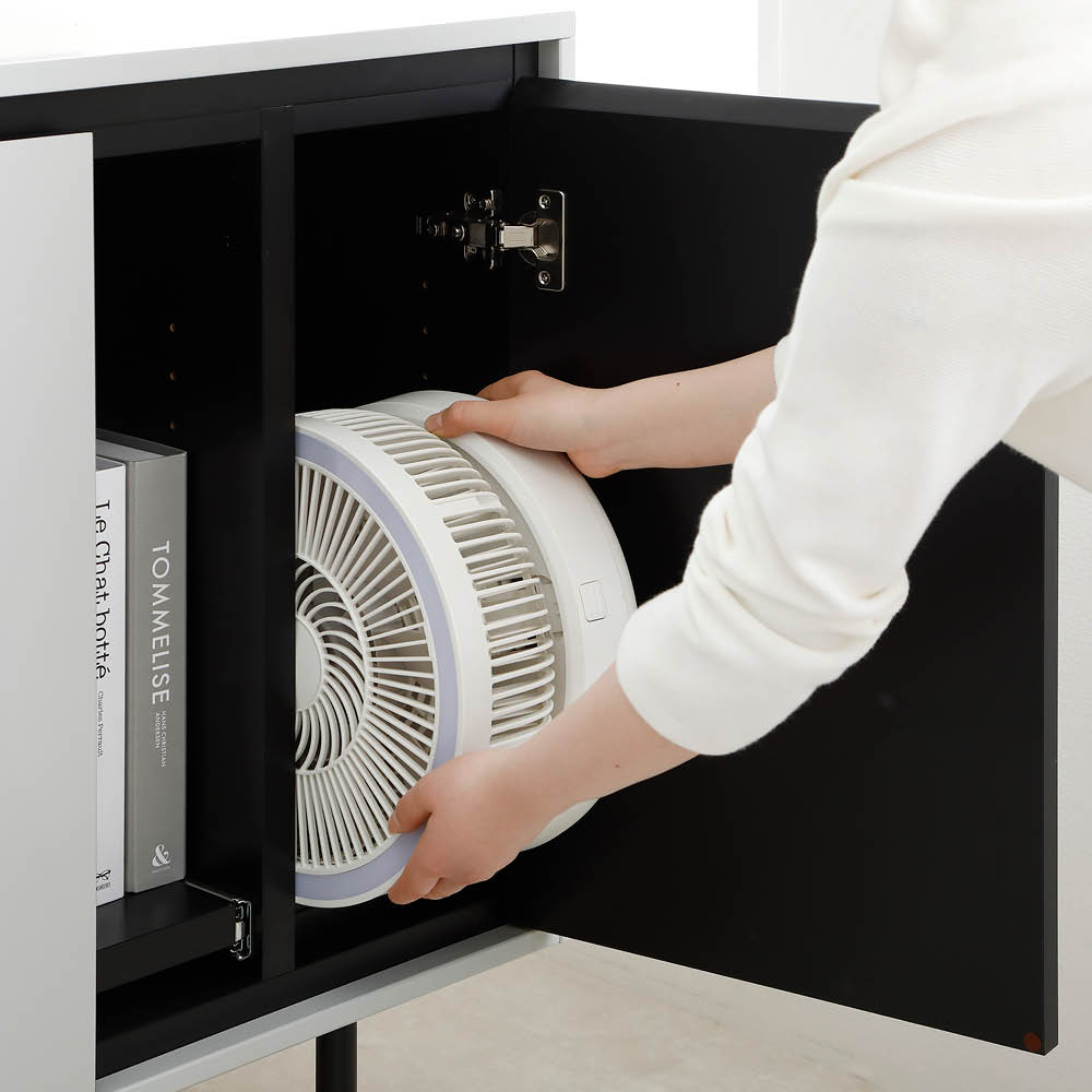 リビングでは支柱を伸ばして部屋全体に、キッチンでは縮めてピンポイントにと、シーンに合わせて風を届けられる伸縮式。大風量サイズで広い範囲をしっかり涼しく、コードレスだから置き場所も選びません。夏はエアコンと一緒に使えば冷房効率を高めて、電気代の節約も期待できます。たっぷり風を届ける大風量タイプなのに、折りたたむと驚くほどコンパクト