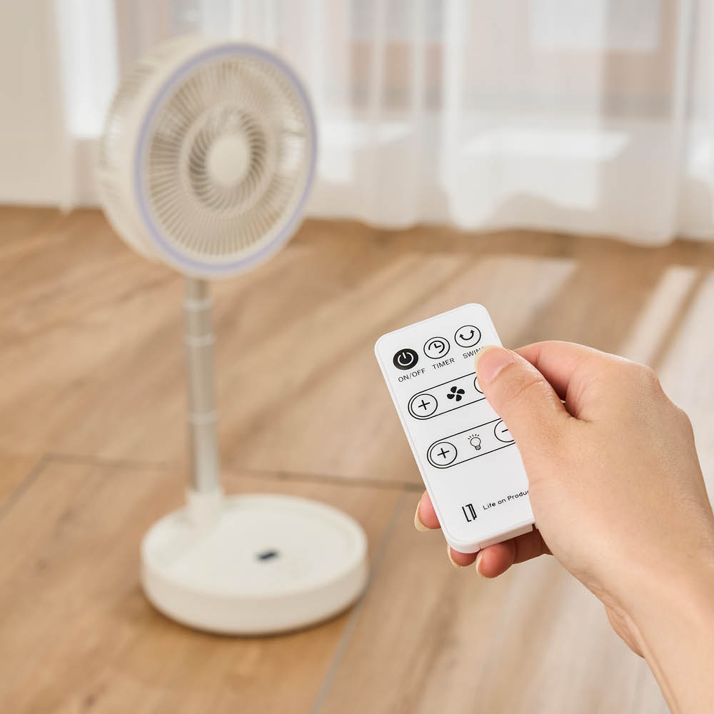 使用するシーンや距離に合わせて風量を4段階から選べます。リモコン付属なので、離れた場所からもちょうど良い風量に調節できます。ラージサイズながら、重さはわずか約2.4kg。移動もラクラク、涼しい風をいつでも、どこでも