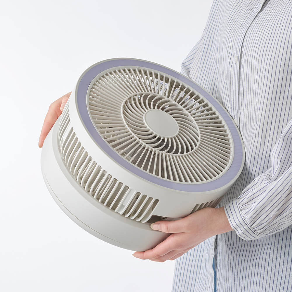 ラージサイズながら、重さはわずか約2.4kg。移動もラクラク、涼しい風をいつでも、どこでも