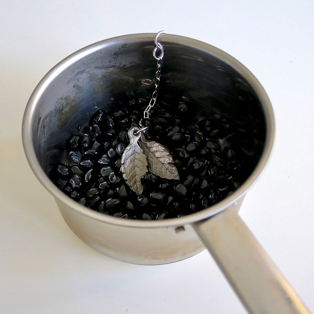 こちらの商品は鉄が溶出しやすいため無塗装です。むき出し鉄の塊のため、本体色が銀色なのです。水分がついているとすぐに錆びますので、ご使用後は完全に水分を取り除いてください。ただ、鉄のリーフからでたサビは身体に害はございませんので、サビが発生してもお気になさらずそのままご使用ください。ただサビを取りたい場合は以下の方法をお試しください。