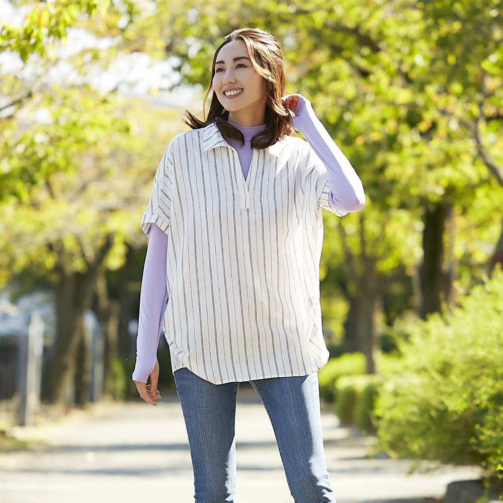 ・程よい高さのハイネックで涼やかに首元までしっかりガード。