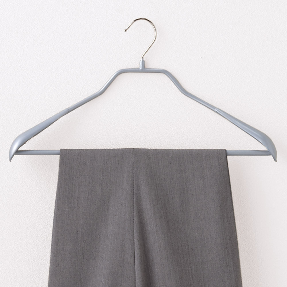 MAWAハンガーいちばんの特長は、その滑りにくさ。ノンスリップコーティング加工で、襟の開いたブラウスやキャミソール、レーヨンなど滑りやすい素材のトップスもしっかりホールド。