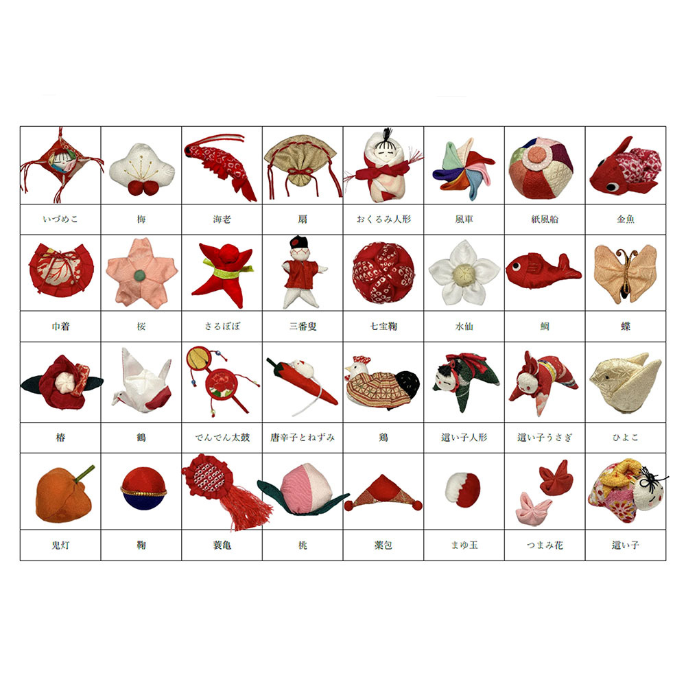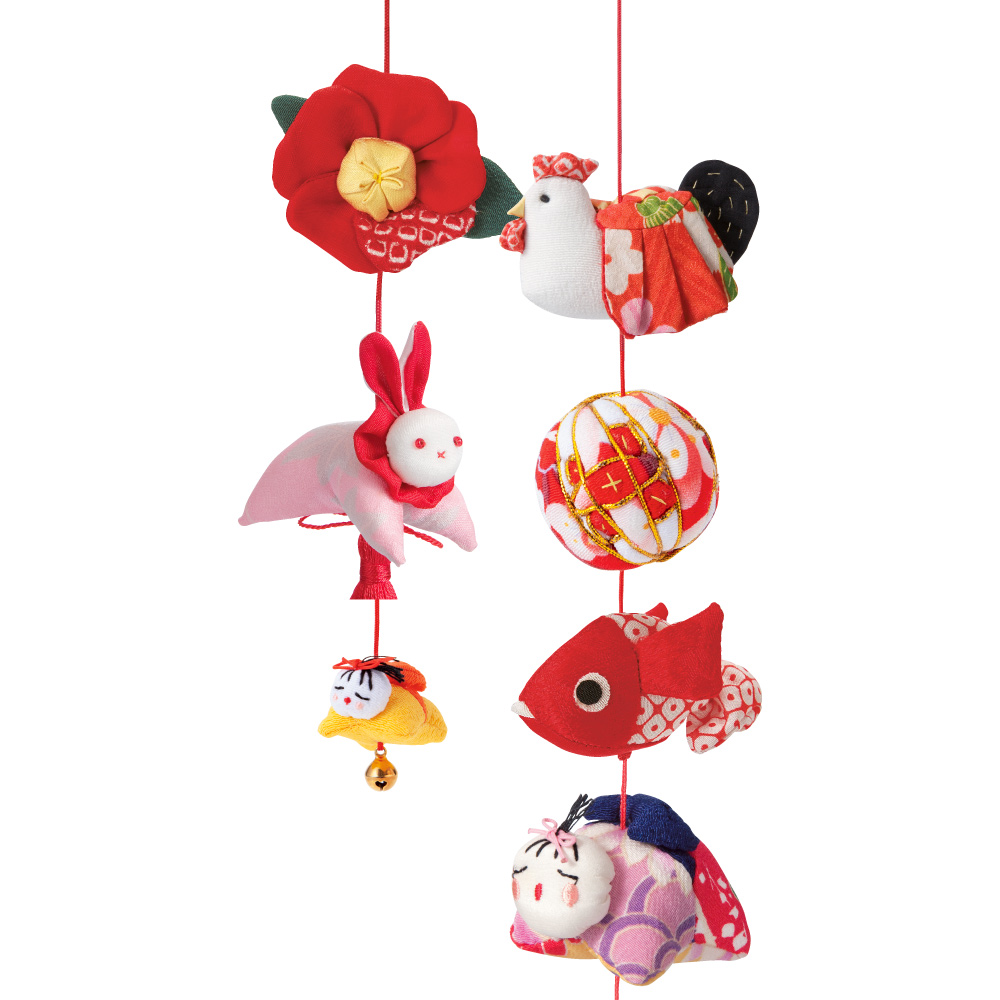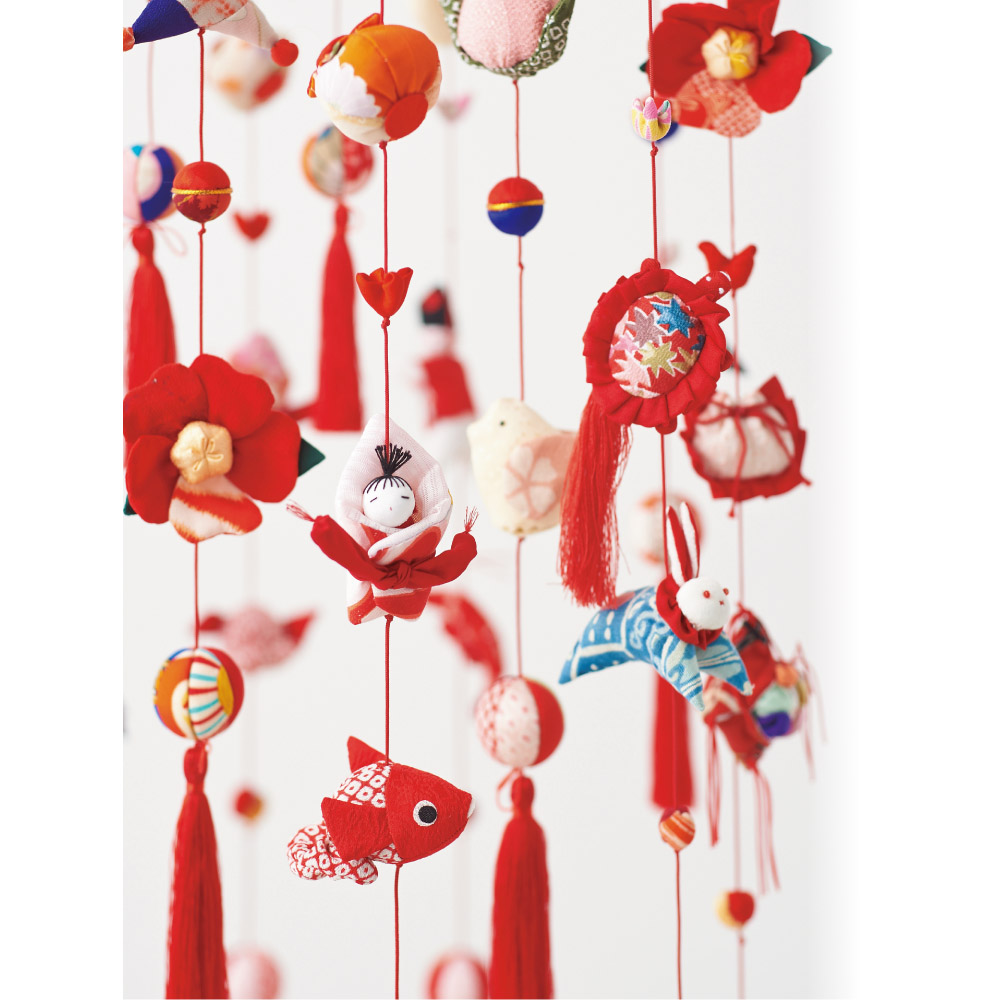 巨大なつるし飾りで有名な地球屋の職人が、鮮やかな色彩のちりめんを使って一つ一つ丹誠込めて手縫いしました。優しい表情のつるし雛や愛らしい小物たちは節句飾りとしてはもちろんのこと、縁起物のインテリアとして一年中お楽しみいただけます。