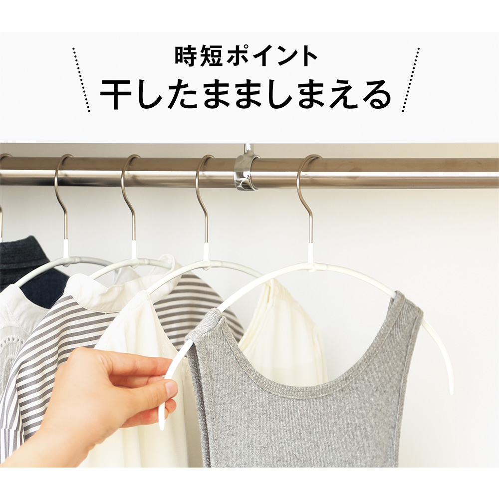 物干し竿からクローゼットへ直行!洗濯はもちろん、収納ハンガーとしても活躍。いちいち掛け替える必要がなく、時間も収納スペースも有効に!