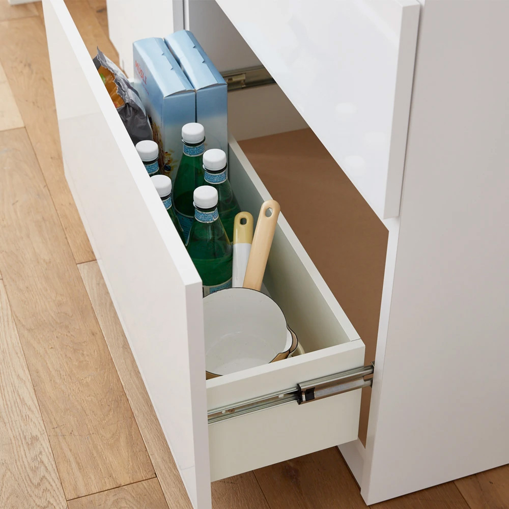 ◆引き出しは全段フルスライドレールで開閉ラクラク。