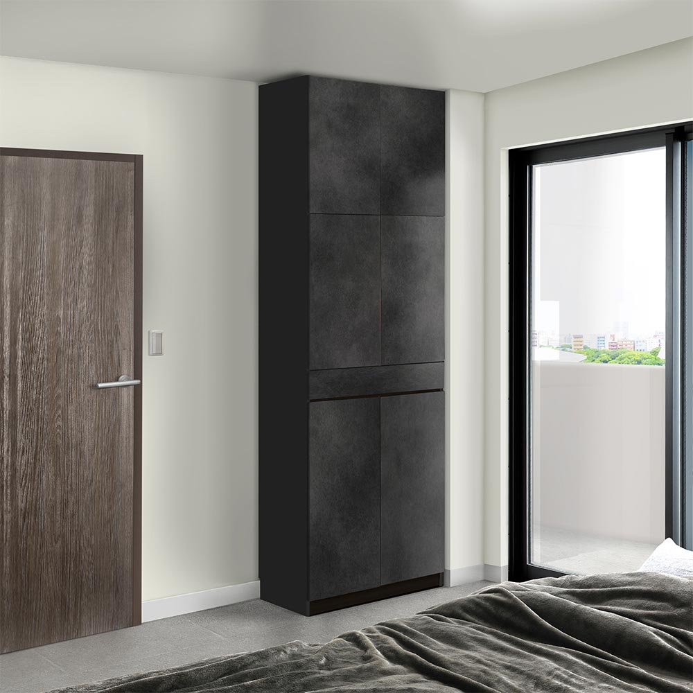 コーディネート例(イ)ライトアッシュ ※写真は奥行40cmタイプ ※写真の天井高さ244cm ※こちらは収納庫タイプ(上部背板あり)です。