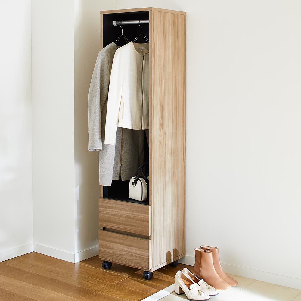 収納物がさっと見渡せる、オープンタイプのワードローブシリーズ。奥行き40cmのスリム設計なのにたっぷり収納。