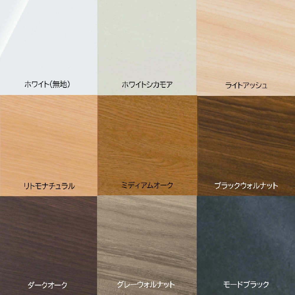 (ア)ホワイト(無地) (イ)ホワイトシカモア (ウ)リトモナチュラル (エ)ダークオーク (オ)グレーウォルナット (カ)モードブラック (キ)ライトアッシュ (ク)ミディアムオーク (ケ)ブラックウォルナット