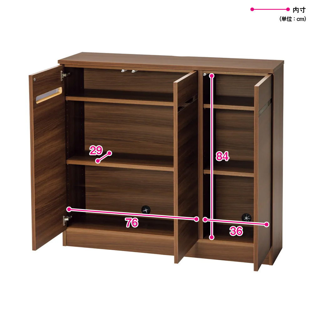 ◆扉付なのでほこりを寄せ付けないのも嬉しいポイント。扉内の棚はすべて可動です。