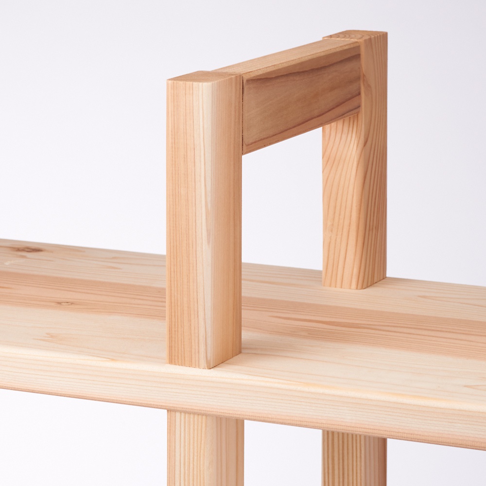 ●国産杉は、しっかり目の詰まった木質による丈夫さが特長。●建築材にも使われているこの素材をそのまま加工している書棚は、長い年月使い続けても安心の確かな耐久性を備えています。