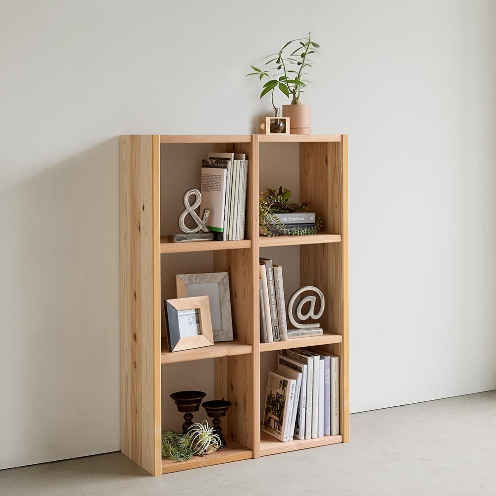 国産杉シェルフ 横2列×縦3段(幅75.5cm高さ111.5cm) 本棚 ラック シェルフ 626309