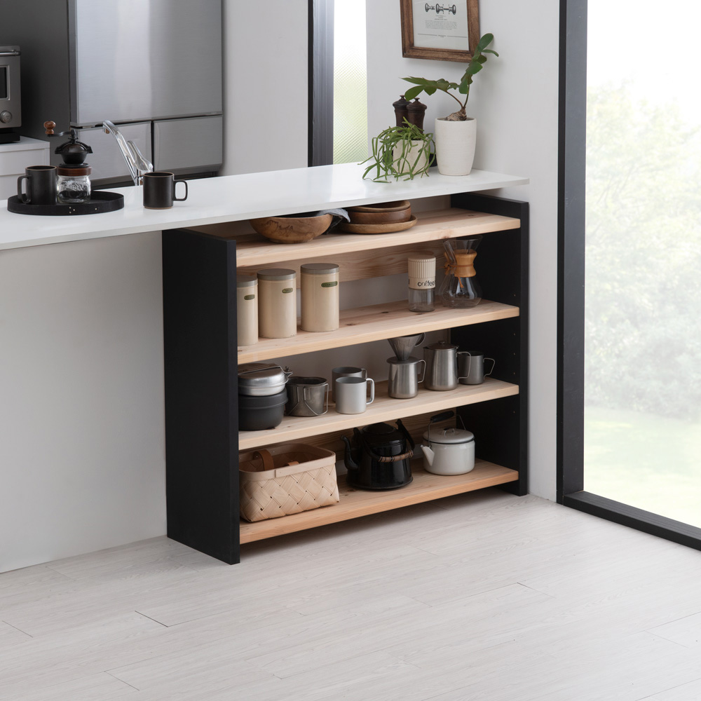 ◆棚板には、しっかり目の詰まった木質が特長の杉天然木を使用。◆建築材にも使われる頑丈さ、耐久性を備え、安心して長く使い続けられます。