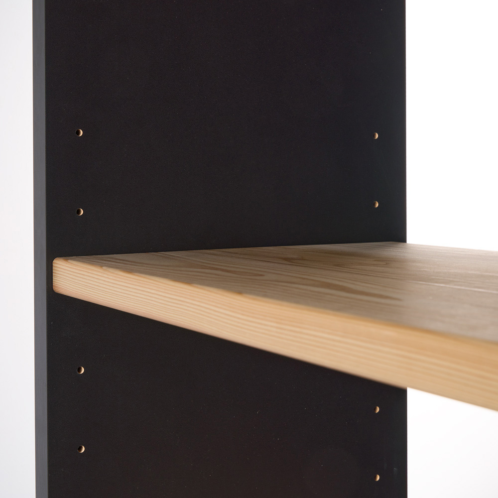 マットブラックと天然木のモダンな組み合わせ。オーディオやグリーンを飾るように収納しても、衣類やファッション雑貨などの収納にも。
