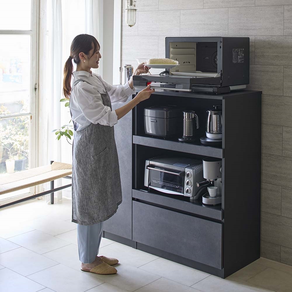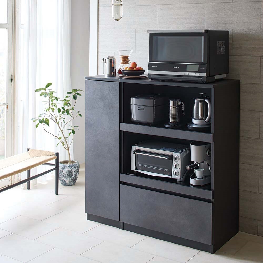 コーディネート例(イ)モードブラック ※写真は扉収納、レンジ収納 幅80cm