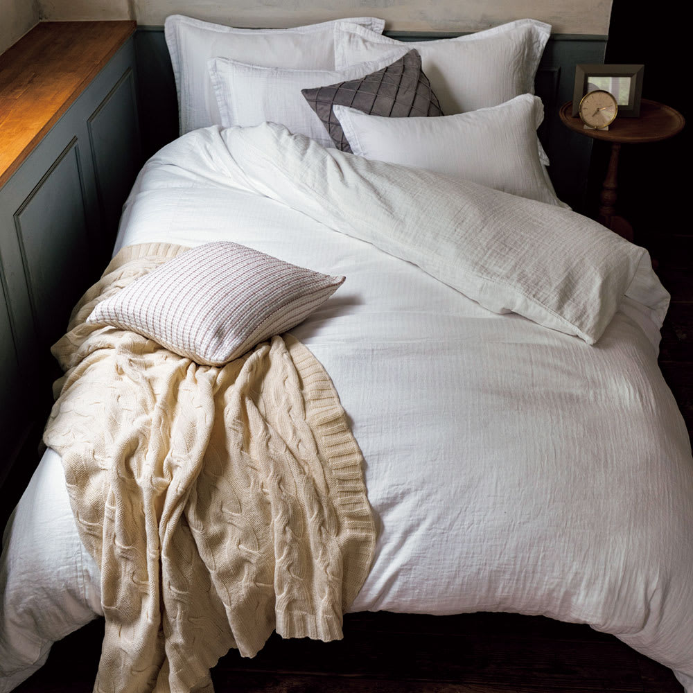 上質な綿100%二重ガーゼは、お洗濯のたびに繊維がやわらかくなり、空気を含んでふっくら育ちます。あなただけの風合いが、毎日の眠りをやさしく包み込みます。こだわりの使い心地