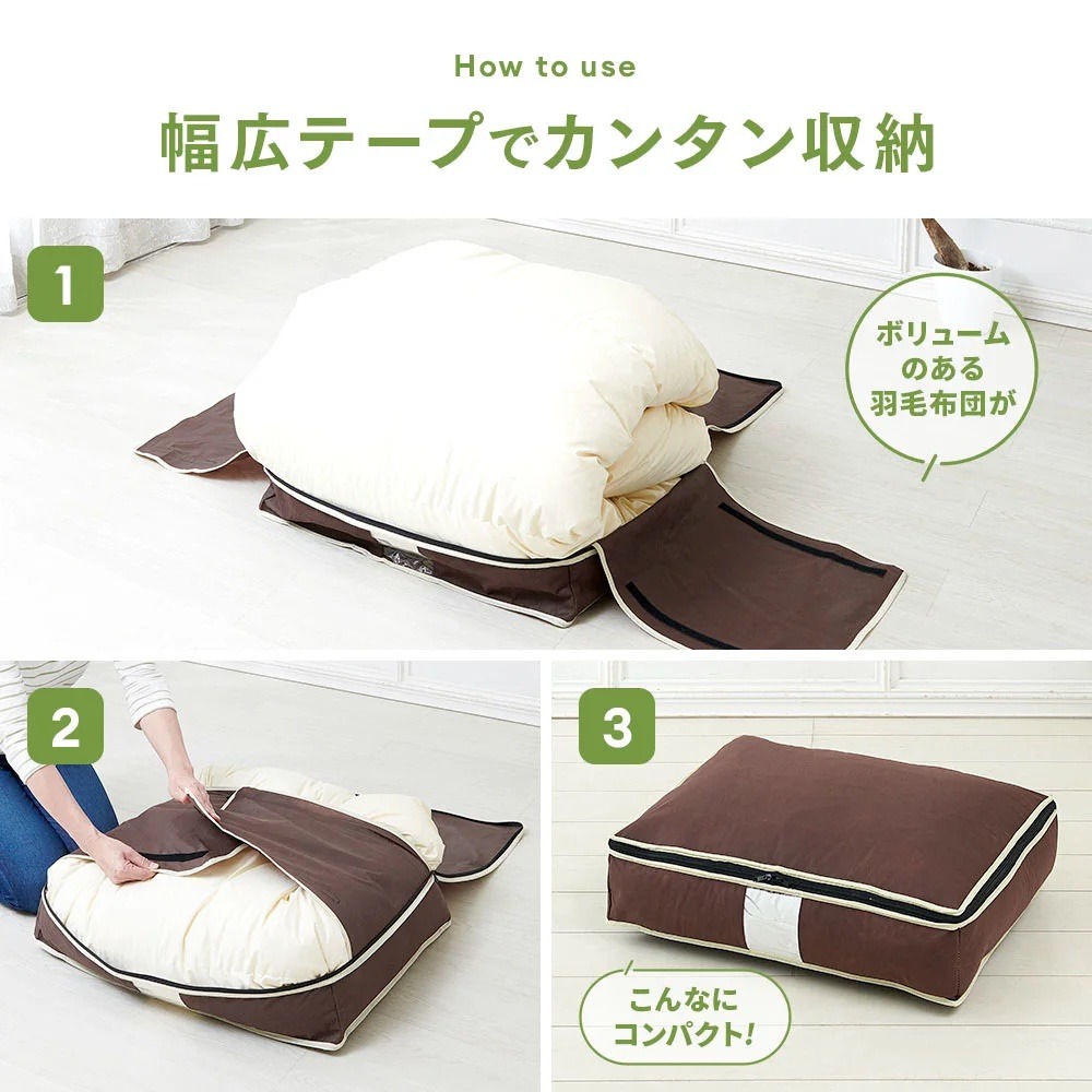●手間をかけずカンタンにスッキリ羽毛布団を収納。●3ステップで収納でき、面倒な作業もないため簡単に収納できます